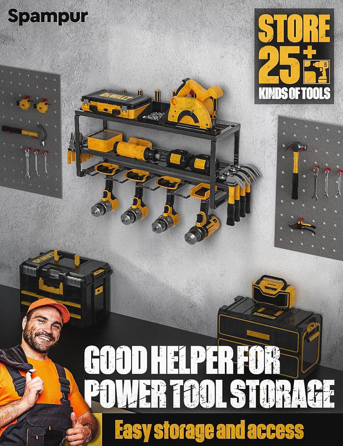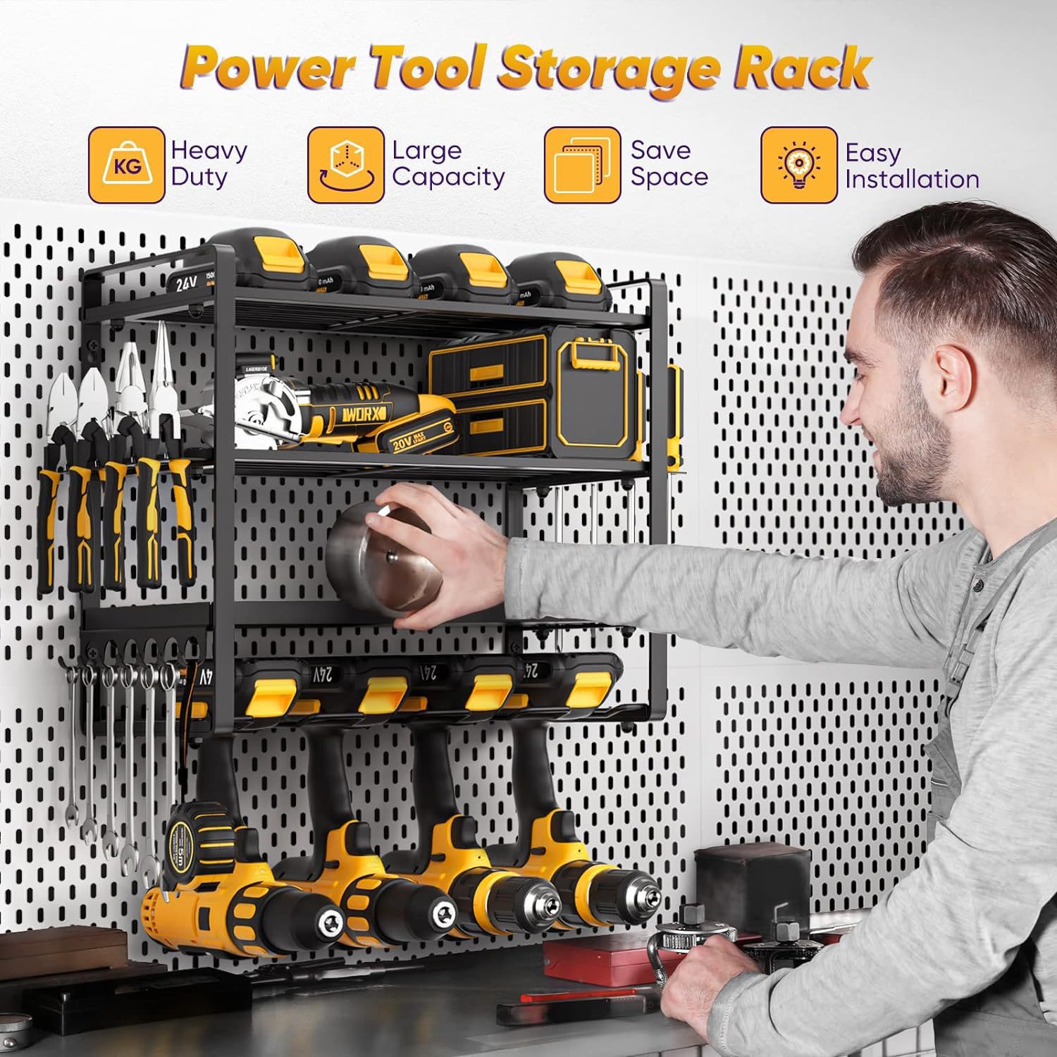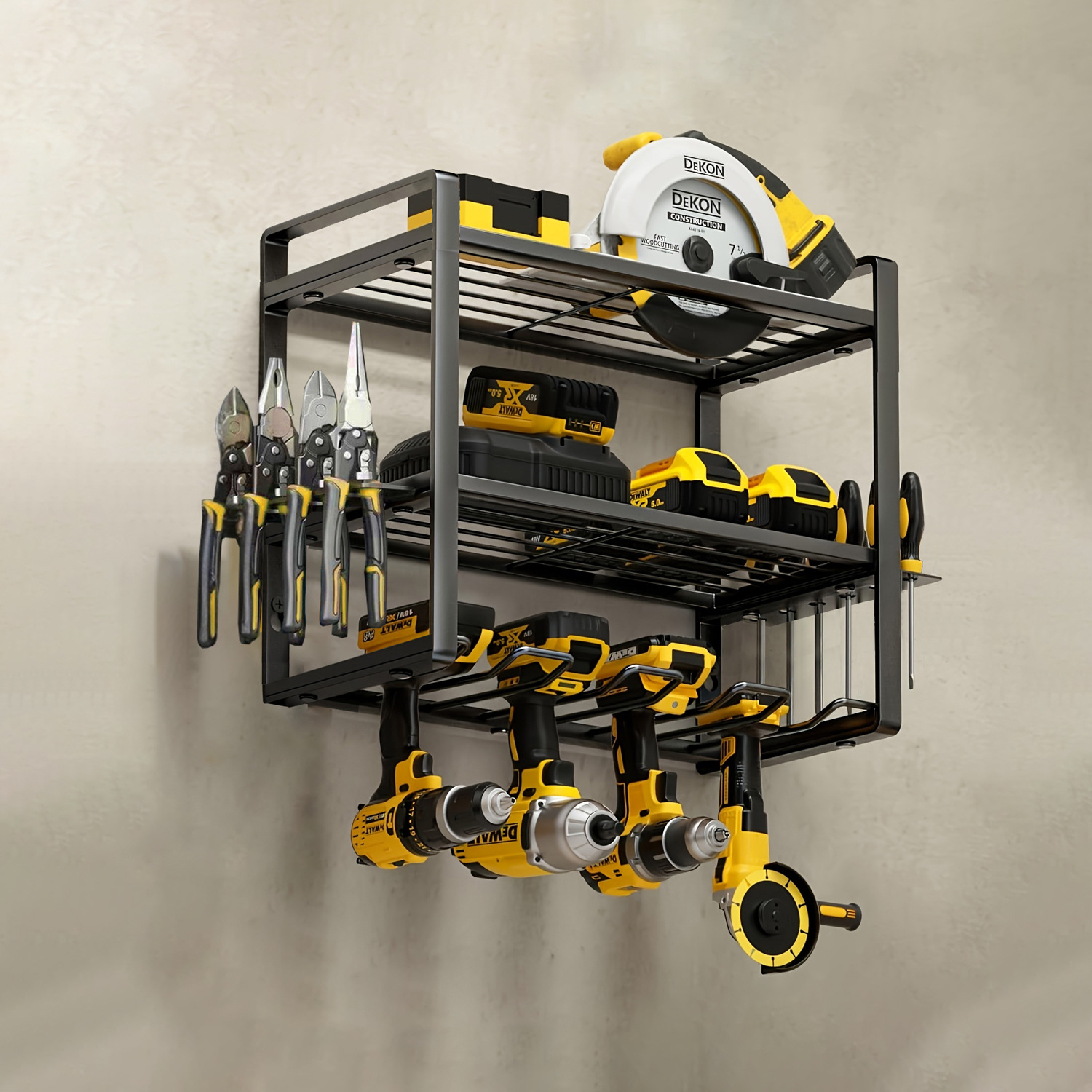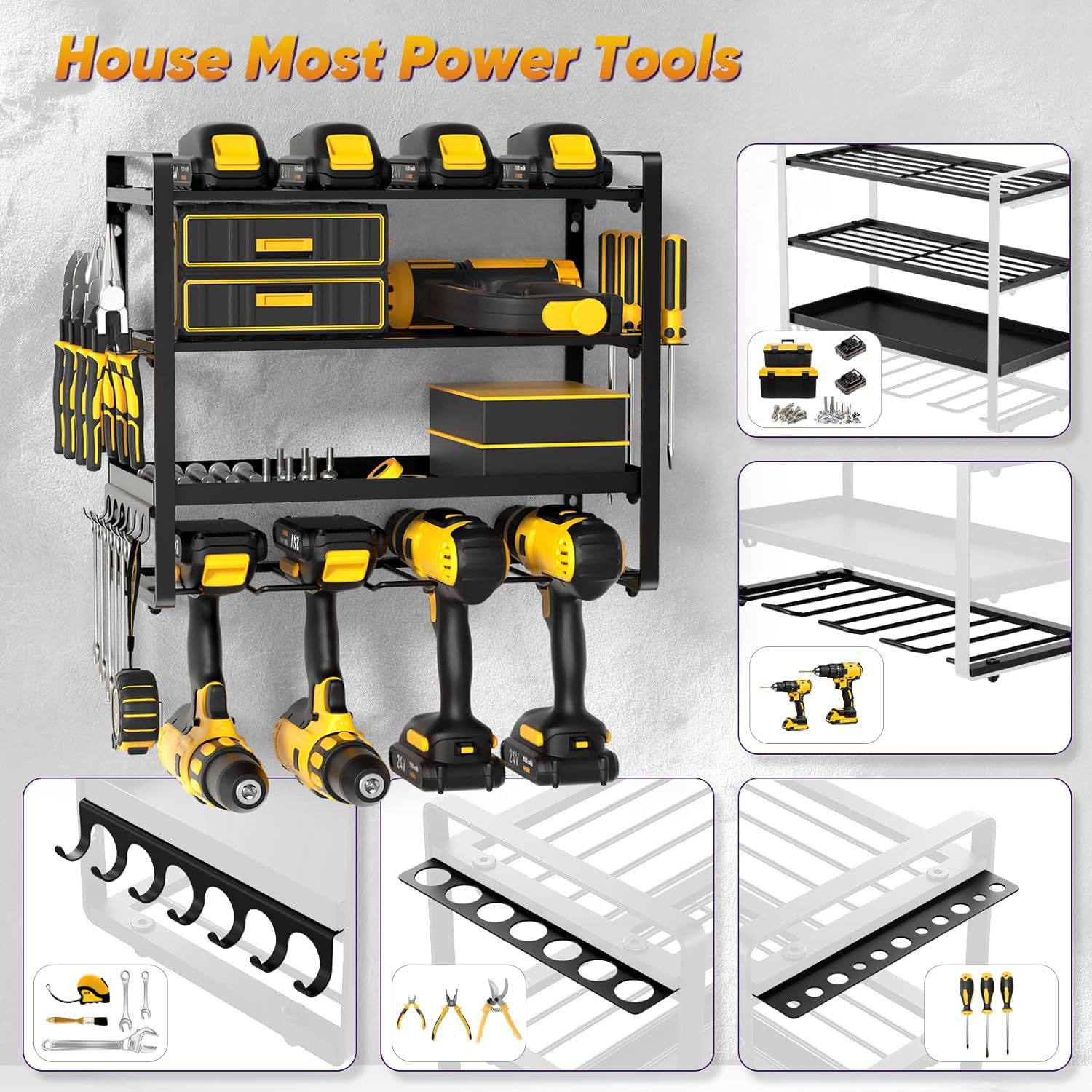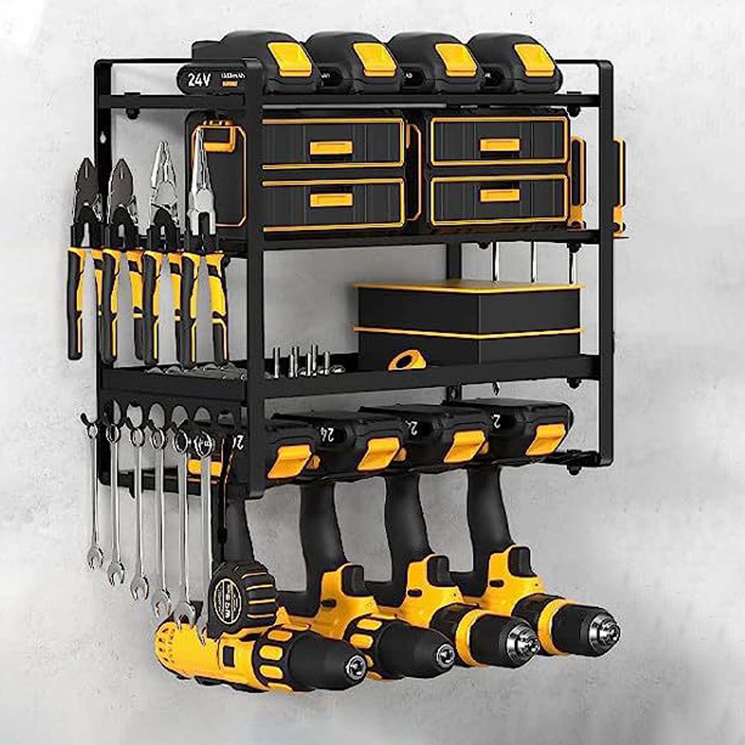 전기 공구 저장 랙 벽에 장착 된 하드웨어 도구 랙 전기 드릴 도구 랙스토어 가기