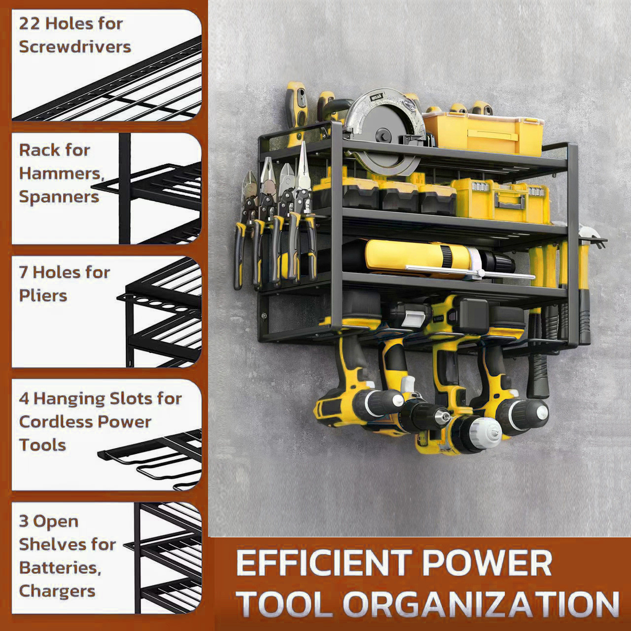 전기 공구 저장 랙 벽에 장착 된 하드웨어 도구 랙 전기 드릴 도구 랙