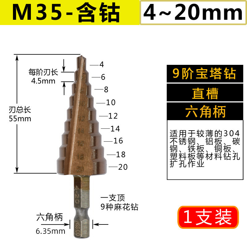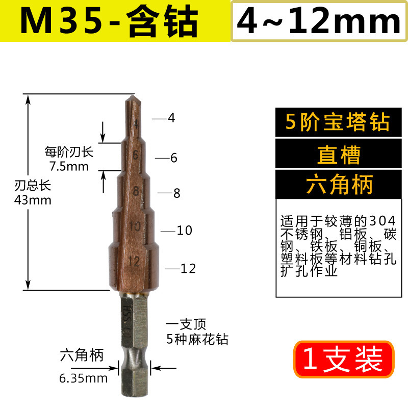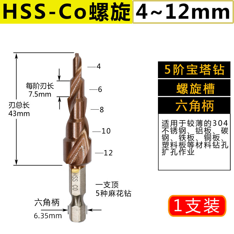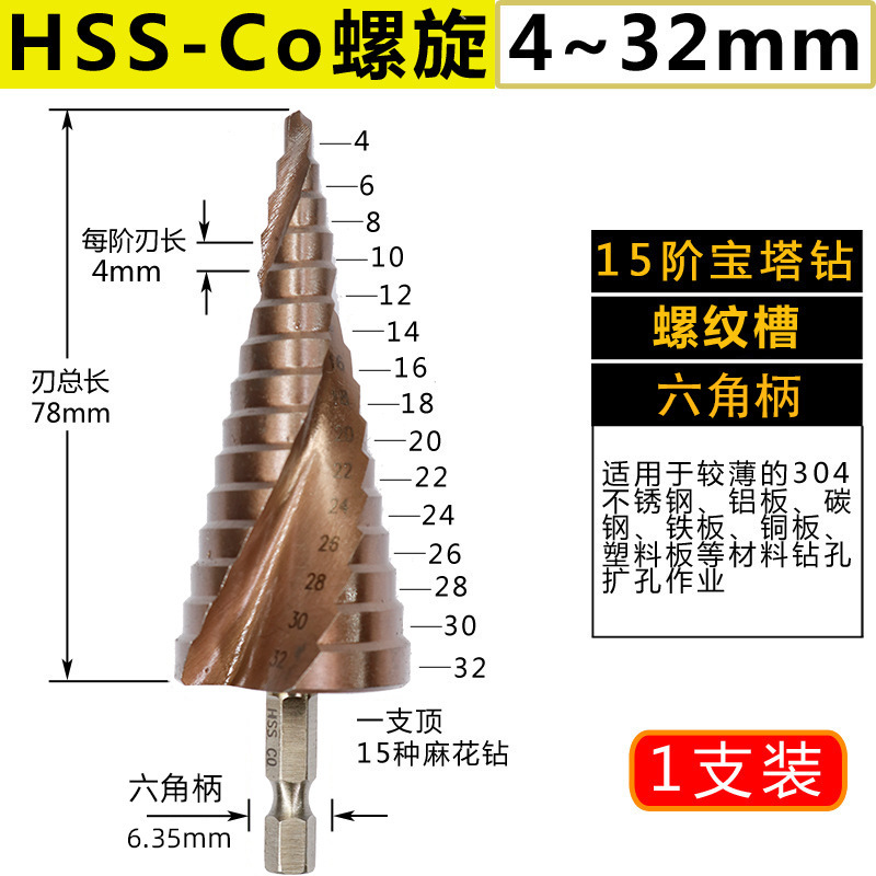파고다 드릴 비트 스테인레스 스틸 알루미늄 플레이트 금속 홀 오프너 드릴 비트 나선형 사다리 타워 스텝 리머스토어 가기