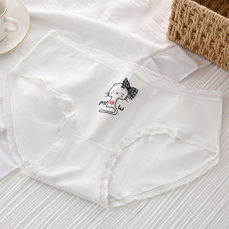 속옷 여성의 통기성 중학교 소녀 얇은 달콤한 만화 귀여운 중간 허리 엉덩이 편안한 새 일본 바지