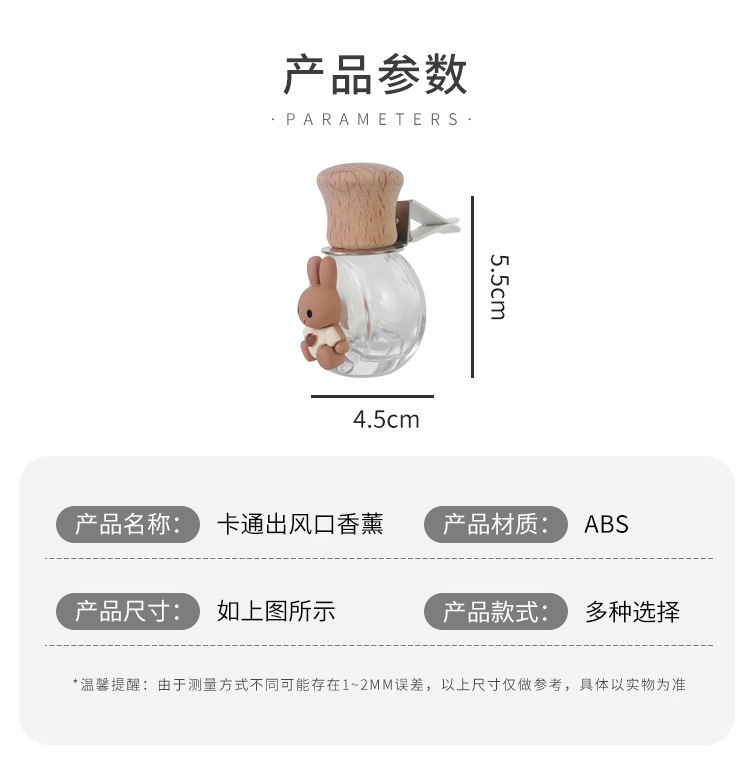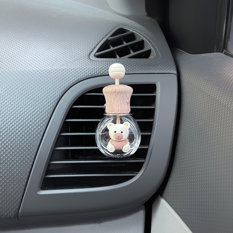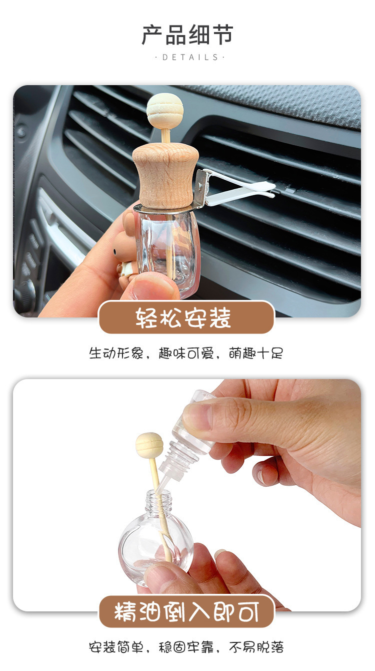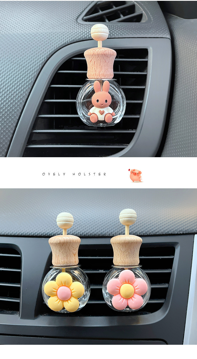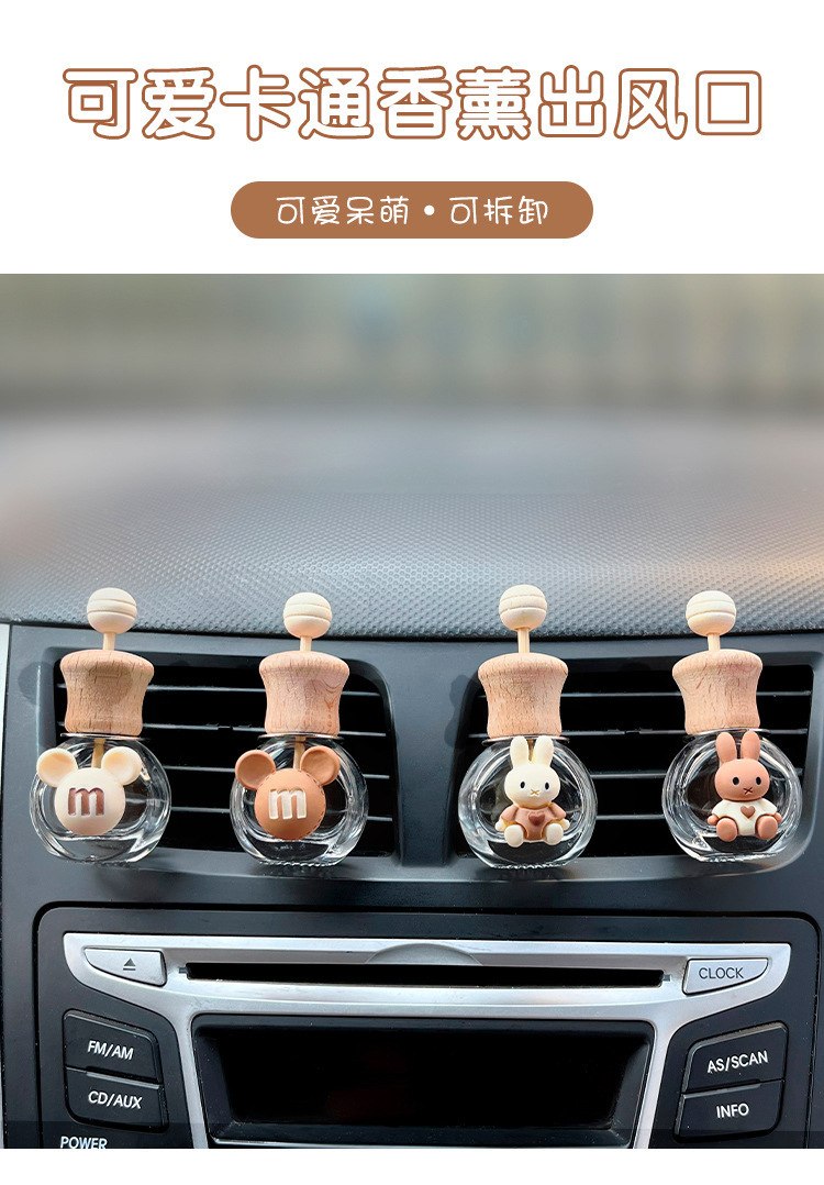 자동차 아로마 테라피 에어 아울렛 병 향수 빈 병 분할 휘발성 병 에어컨 장식 귀여운 만화 자동차 편지 화이트스토어 가기