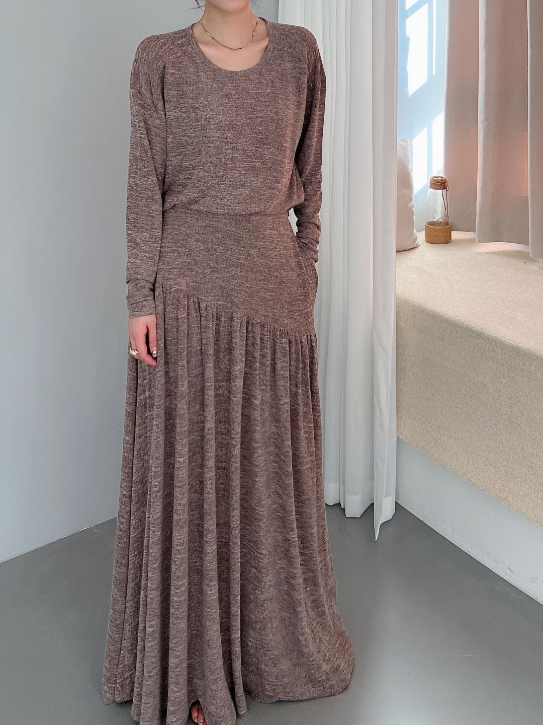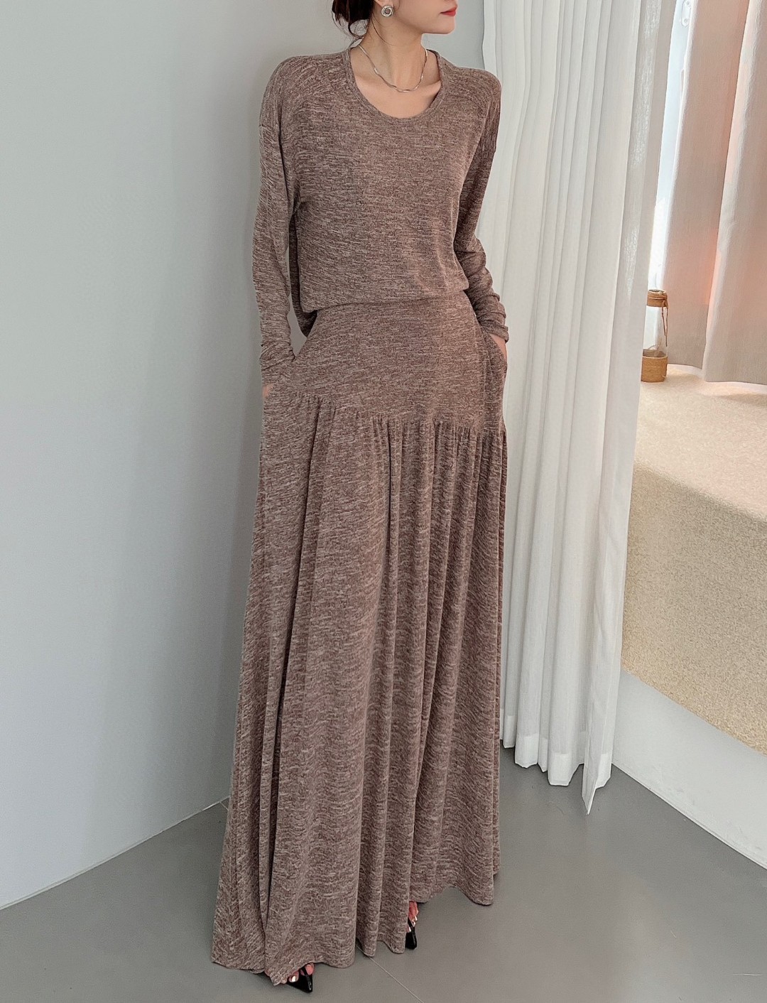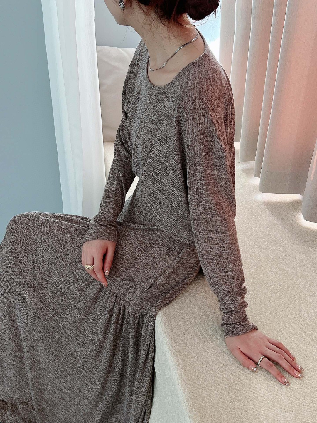 철거! 이른 가을 새로운 비 실크 꽃 원사 게으른 바람 ~ 니트 긴 소매 티셔츠 스커트 패션 세트스토어 가기