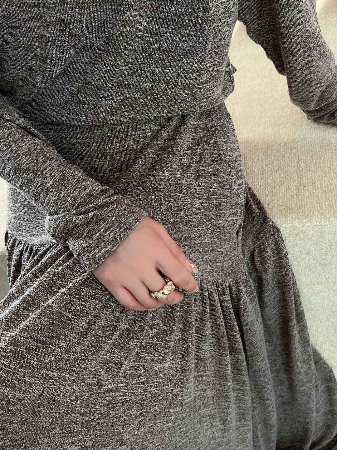 철거! 이른 가을 새로운 비 실크 꽃 원사 게으른 바람 ~ 니트 긴 소매 티셔츠 스커트 패션 세트