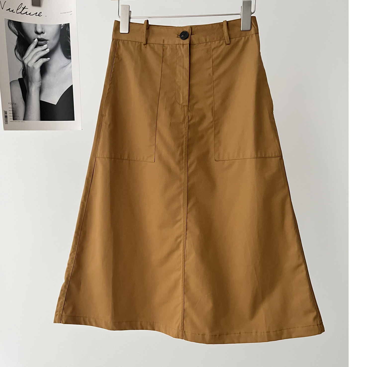 재고 Xiaohefeng 더블 포켓 A-라인 스커트 여성의 가을 새로운 단색 통근 직선 중간 길이 스커트