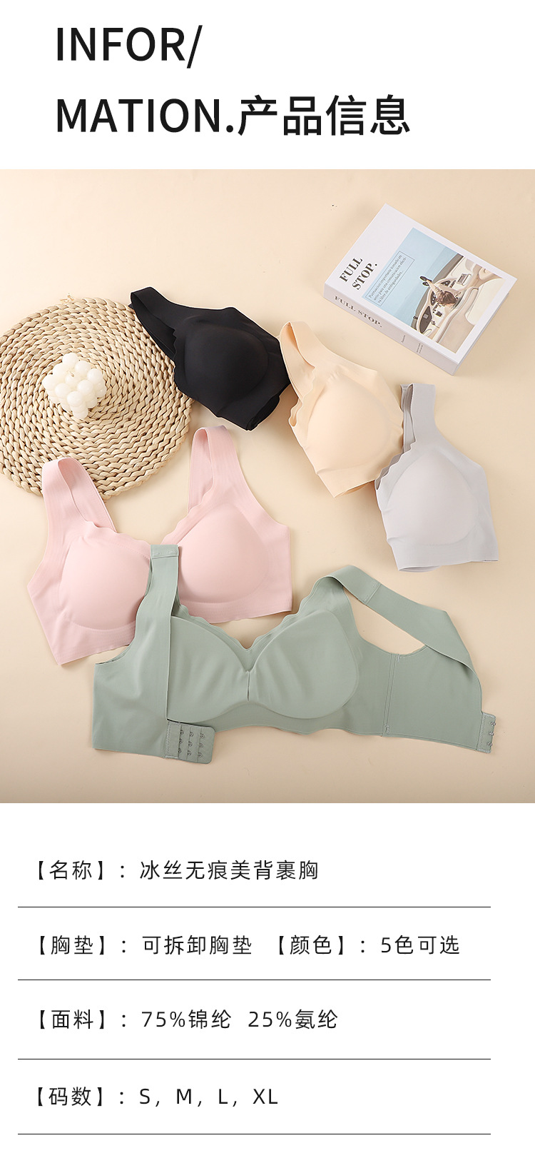 와이드 숄더 스트랩 노 마크 스틸 링 수집 수면 상부 콜럴 가능 파라머 조정 가능한 스포츠 뷰티 백 속옷 여성용 브라스토어 가기