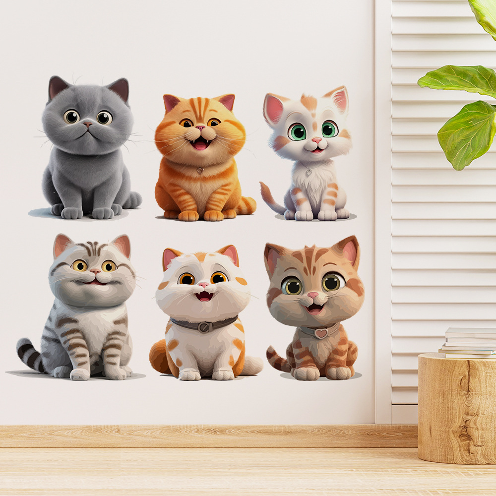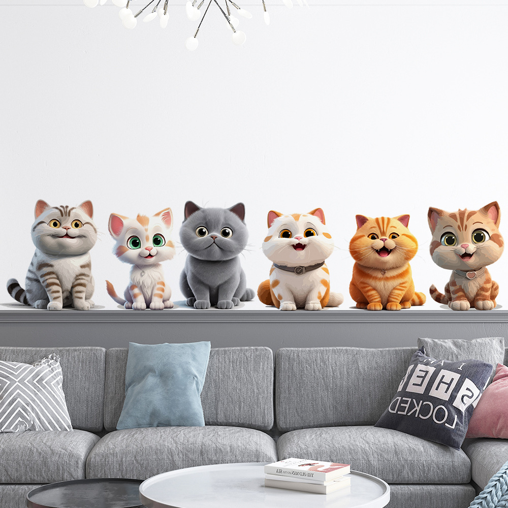 Yiyao DD3459 새로운 창조적 인 작은 뚱뚱한 고양이 벽지 침실 거실 배경 장식 및 아름다움 자기 접착 벽 스티커