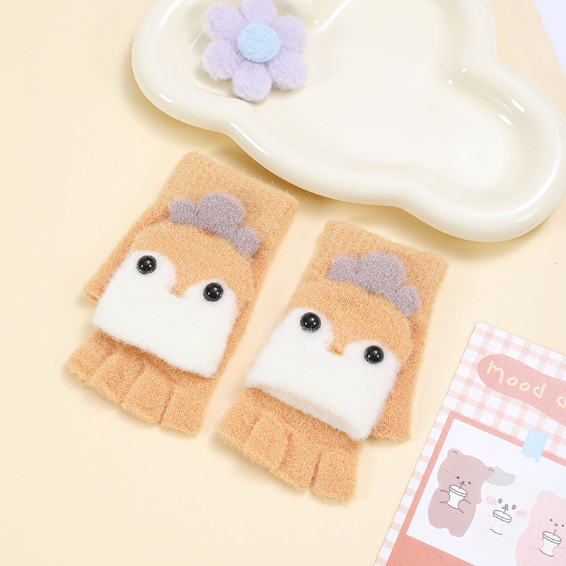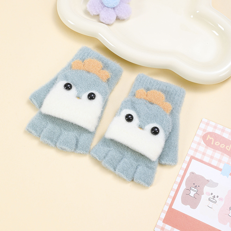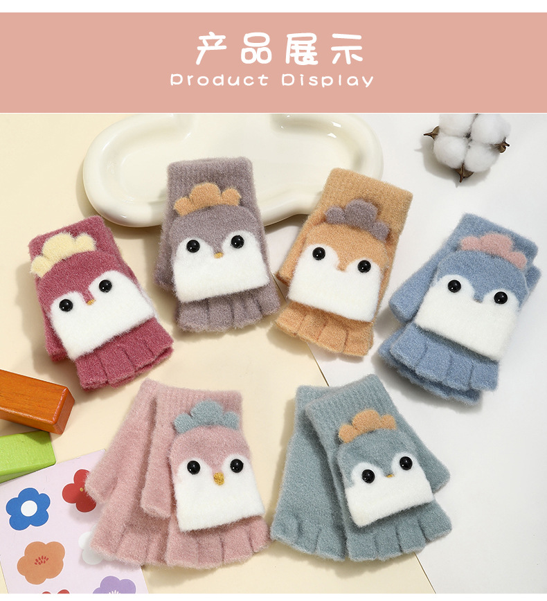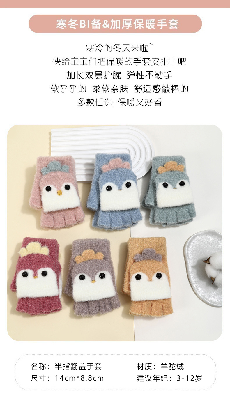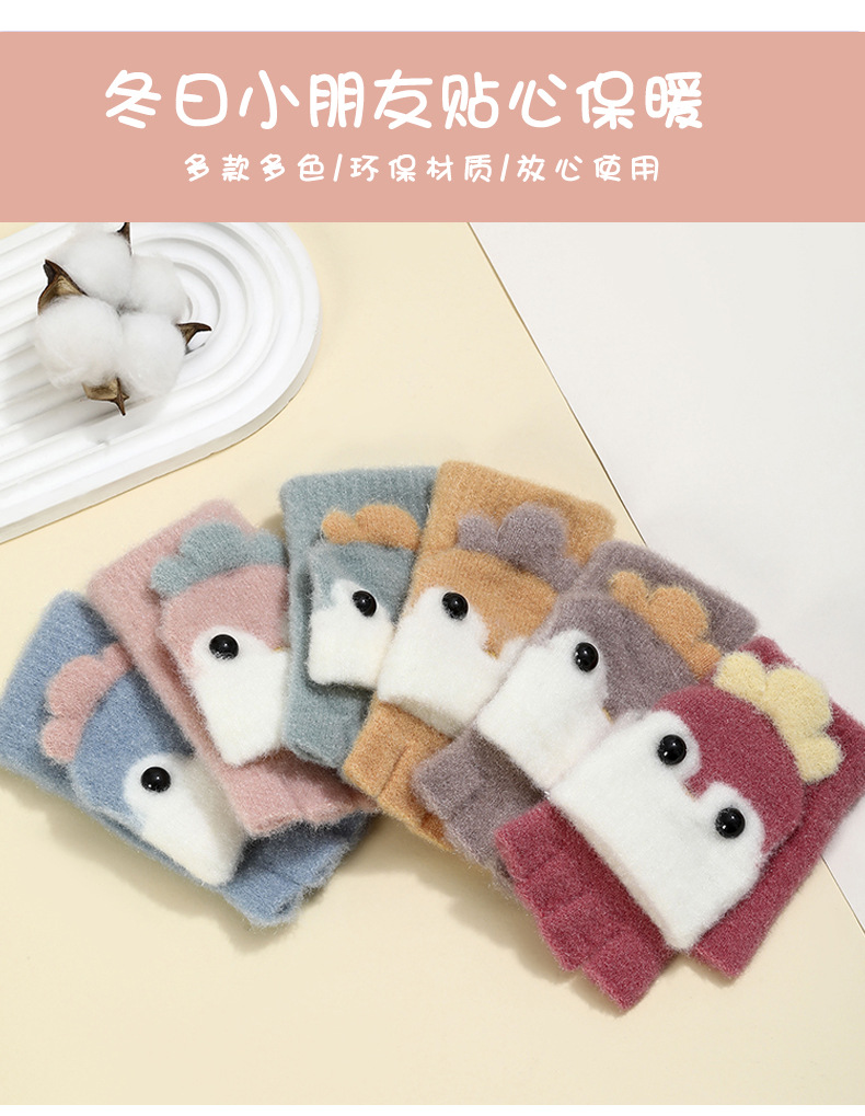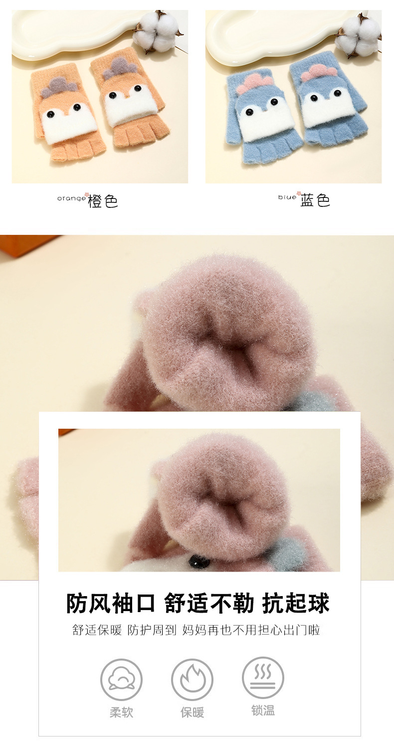 겨울 따뜻한 어린이 학생 쓰기 사이클링 야외 반 손가락 플립 편리한 장갑