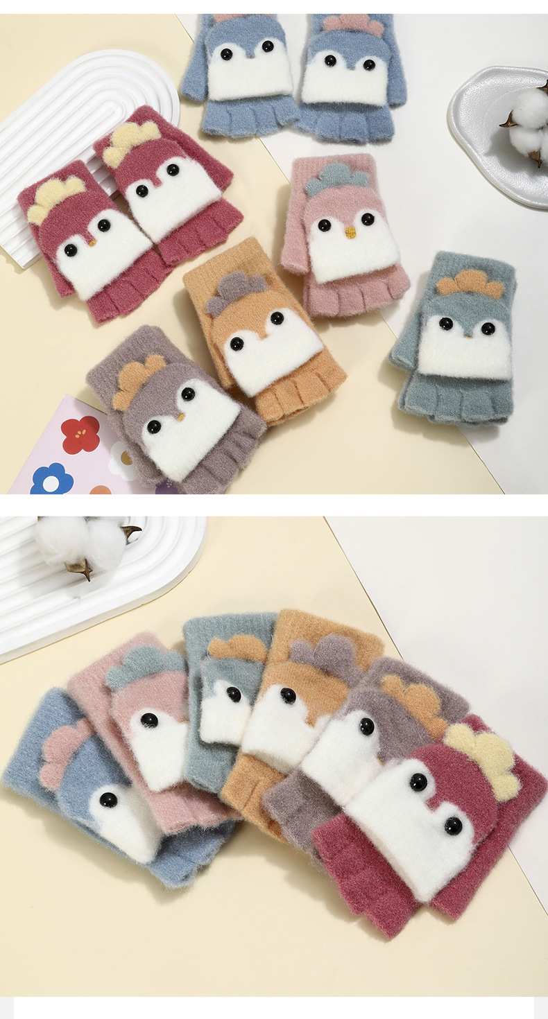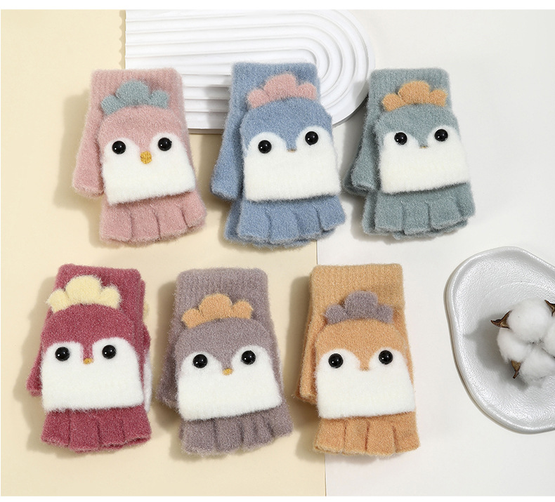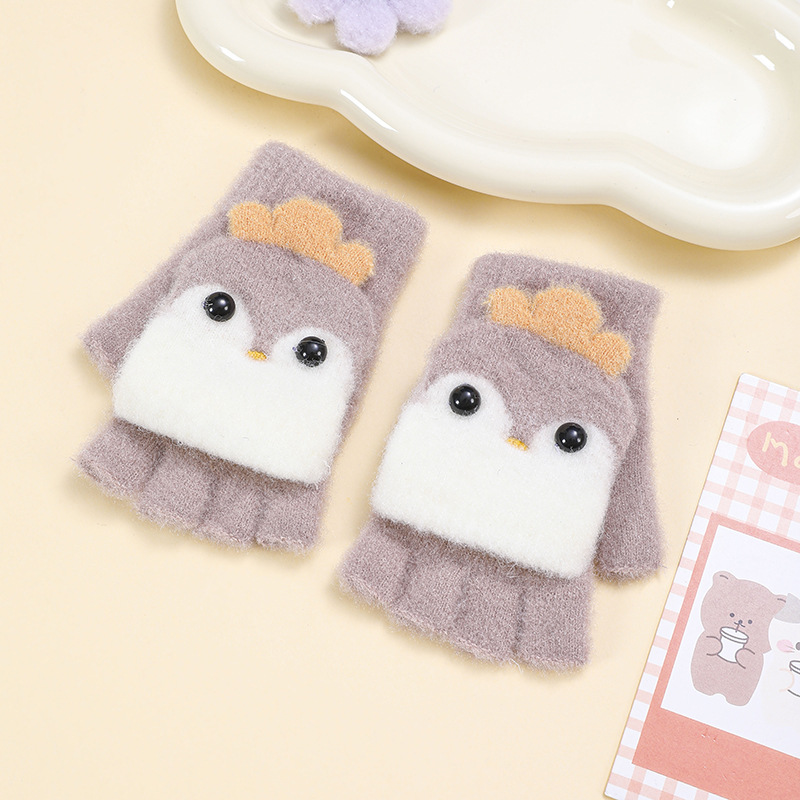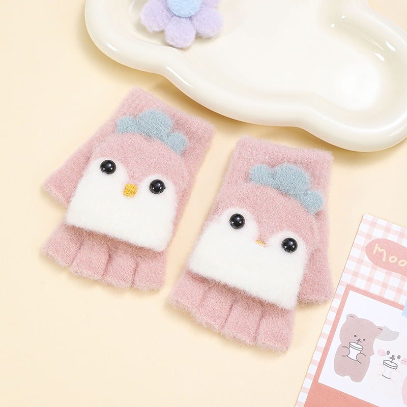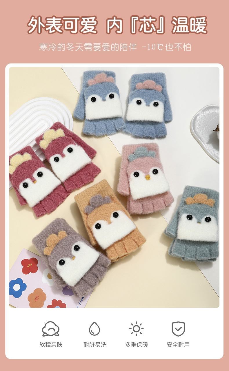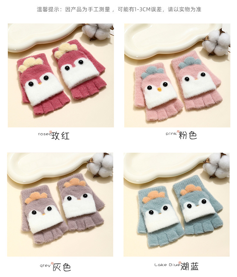 겨울 따뜻한 어린이 학생 쓰기 사이클링 야외 반 손가락 플립 편리한 장갑