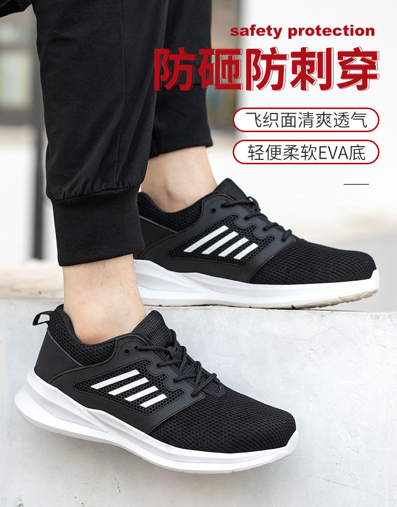 남성용 국경을 넘는 노동 보호 신발, 탈취, 통기성, 충격 방지, 펑크 방지 노동 보호 신발, 사계절용 플라이 니트 경량 내마모성 안전화