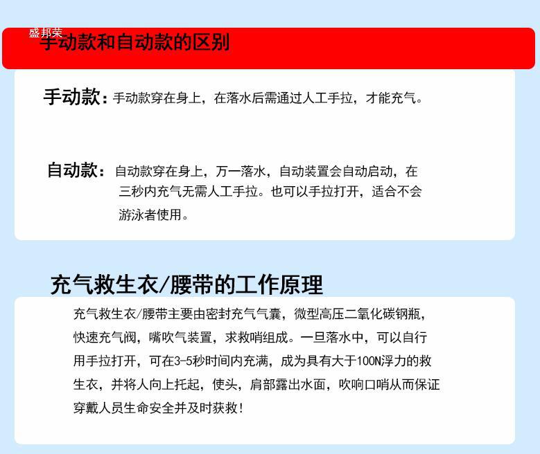 공장 직접 판매 휴대용 대형 구명 조끼 풍선 자동 구명 조끼 해양 대형 드리프트 부력 자동 충전스토어 가기