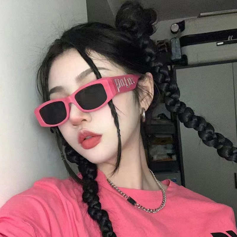 새로운 핑크 편지 선글라스 핑크 뜨거운 소녀 스퀘어 작은 프레임 안경 그물 인기있는 남성 펑크 스타일 힙합 선글라스 도매