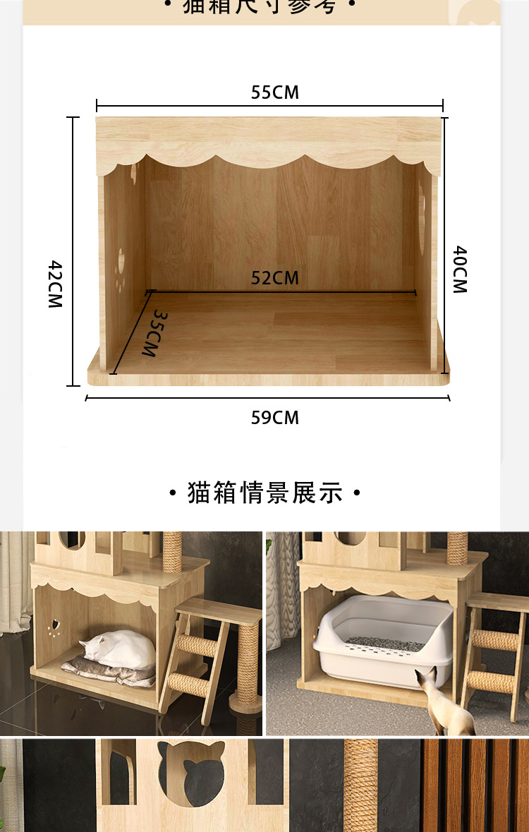 • 고양이 상자 고양이 등반 랙-고급 단단한 나무 넓어지고 강화