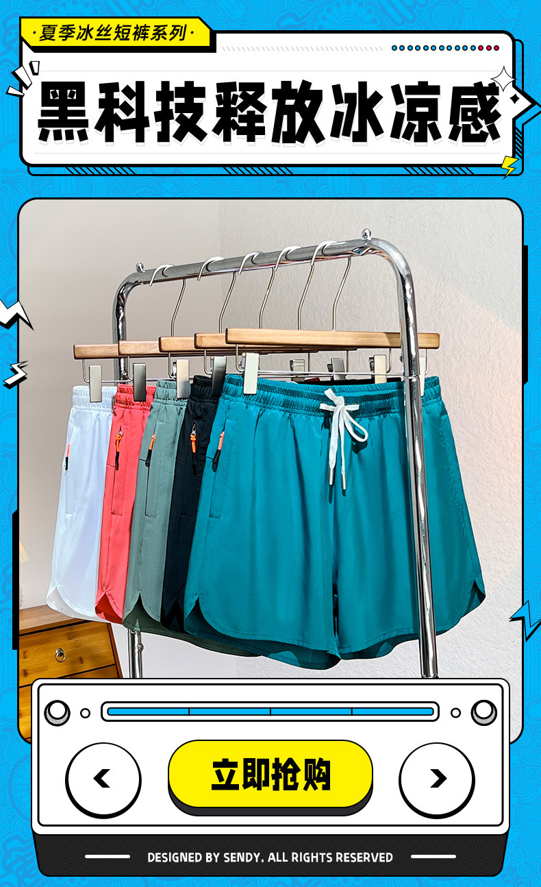 반바지 남자의 여름 얇은 아이스 실크 바지 남자의 외부 착용 트리플 바지 느슨한 빠른 건조 스포츠 캐주얼 바지 커플스토어 가기