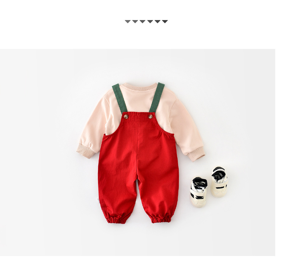 越己女宝宝秋冬装新款洋气宝宝加绒条纹卫衣婴儿背带裤爬服55500