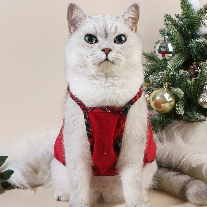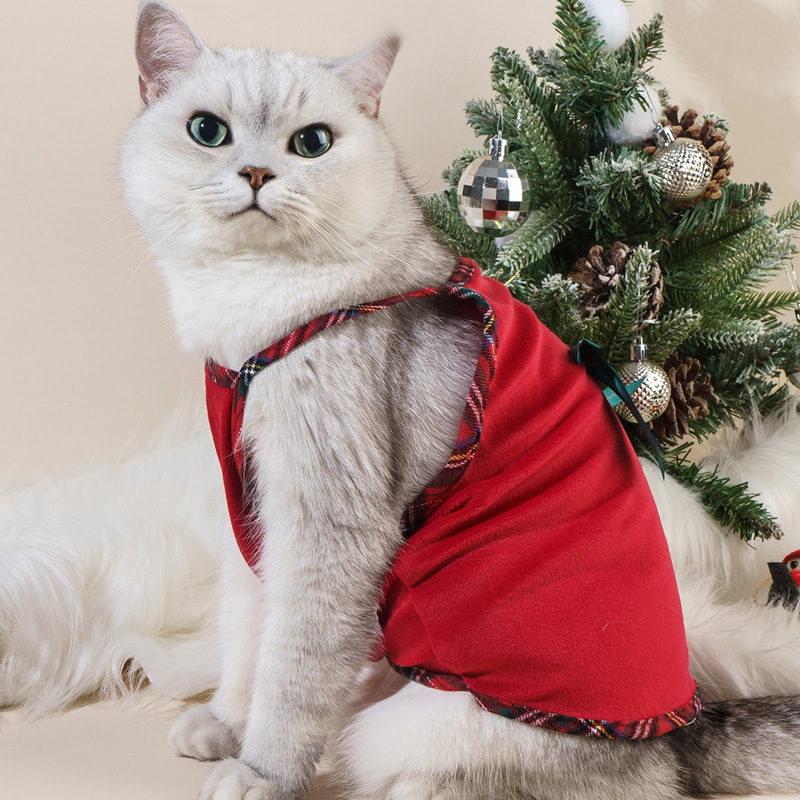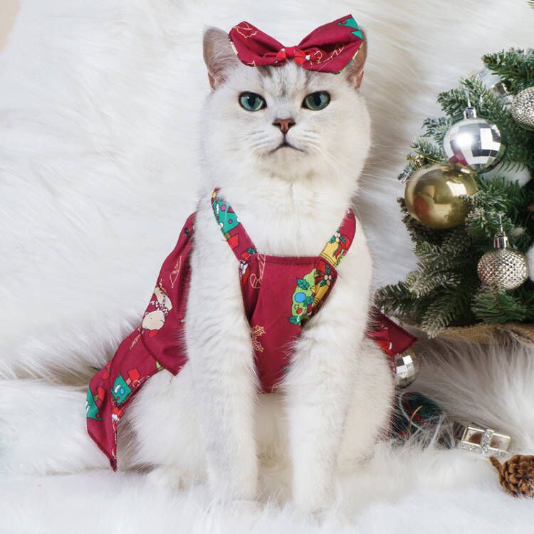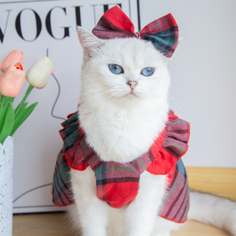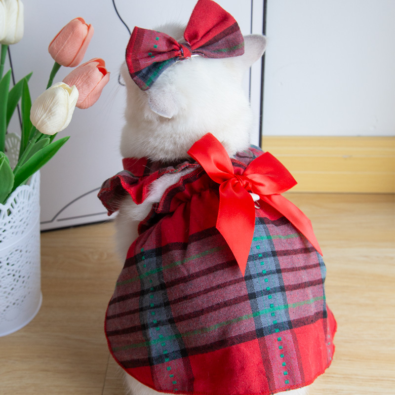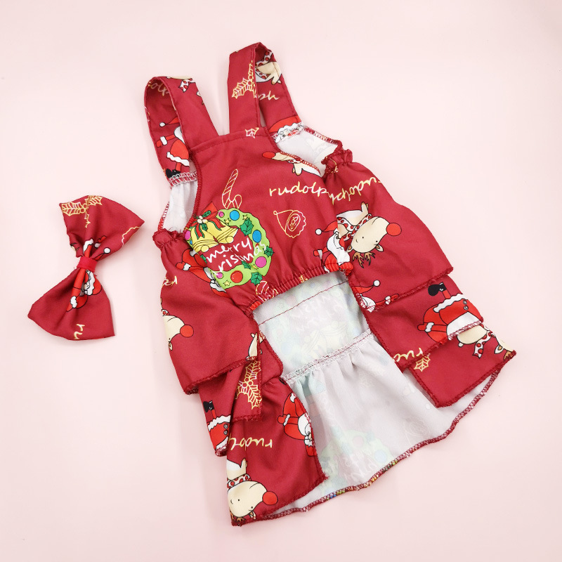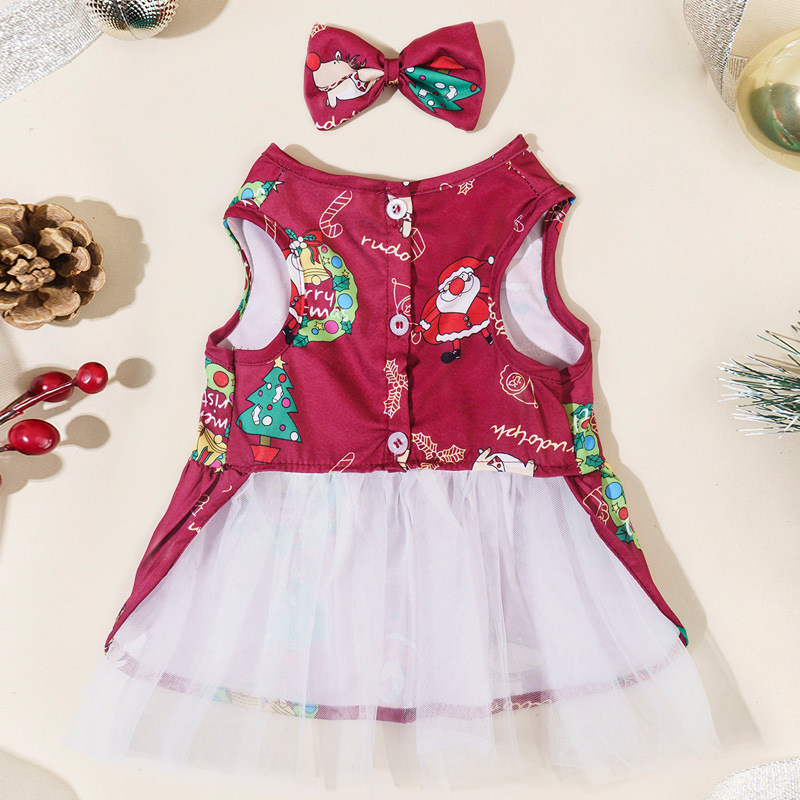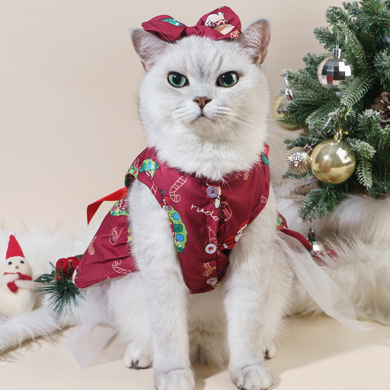 새로운 크리스마스 애완 동물 개 옷 고양이 크리스마스 할로윈 거즈 원피스 원피스 국경 재고 도매스토어 가기