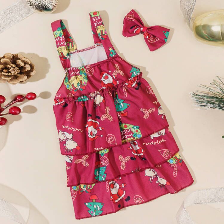 • 빨간 크리스마스 케이크 스커트 머리 꽃