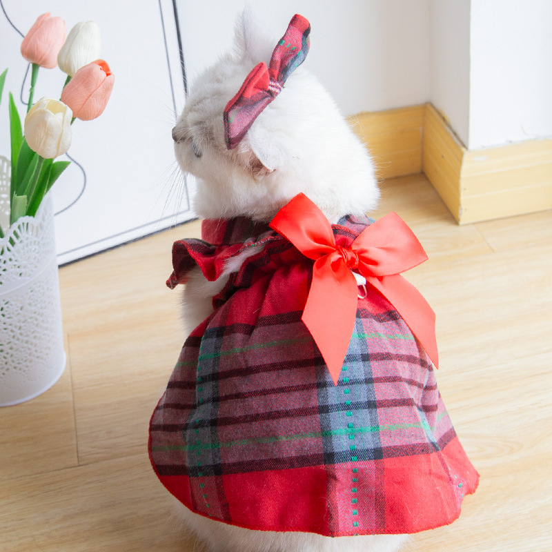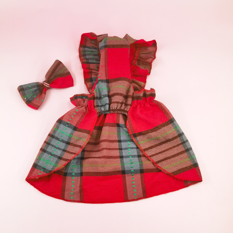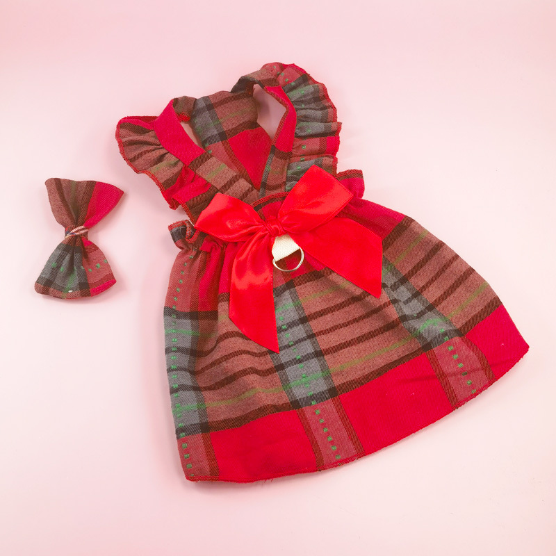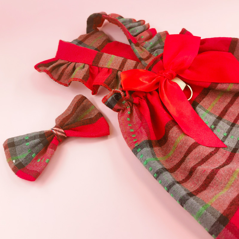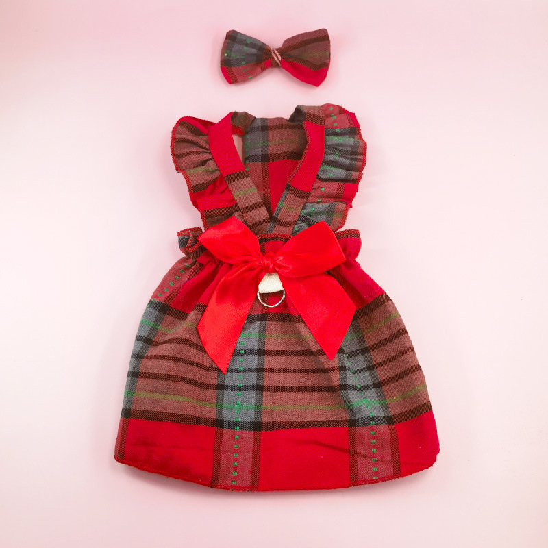• D05 레드-크리스마스 체크 무늬 스커트 나비 넥타이 머리 꽃