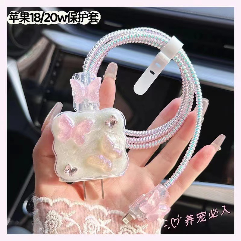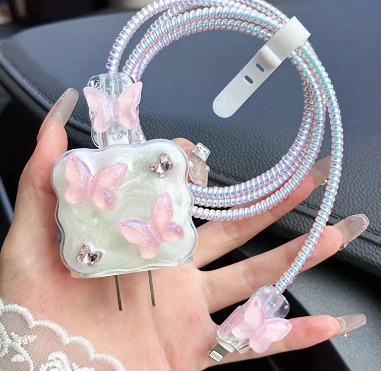 • 애플 20W-크림 핑크 나비 5 피스 세트