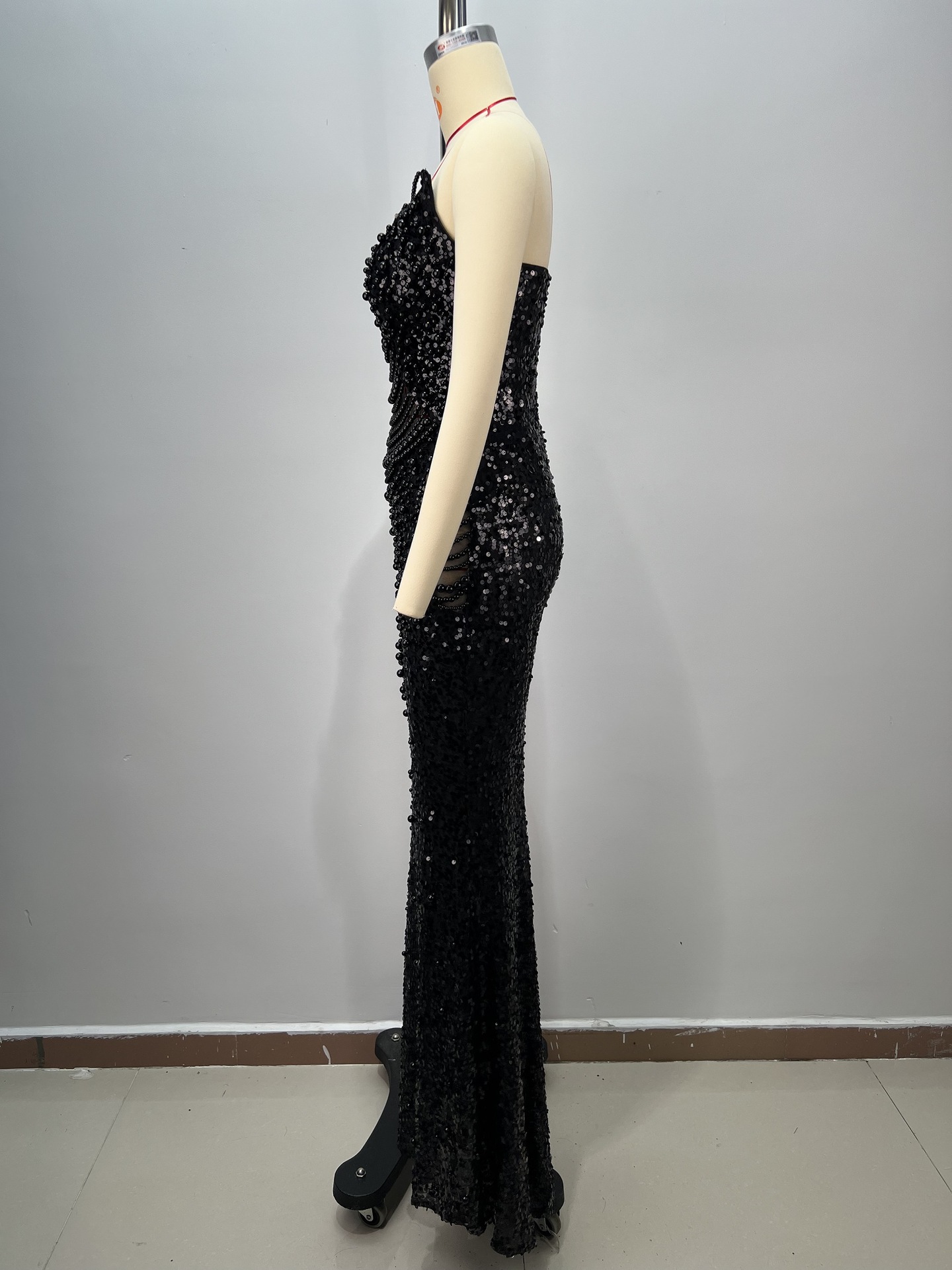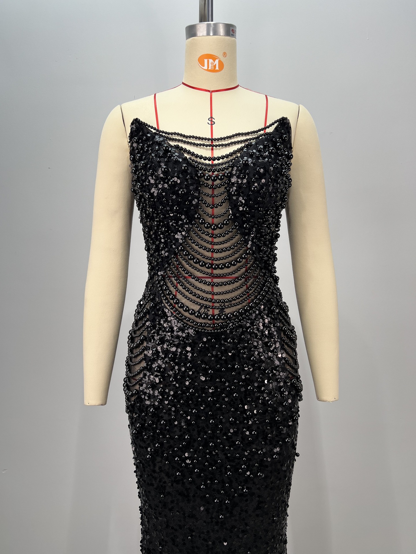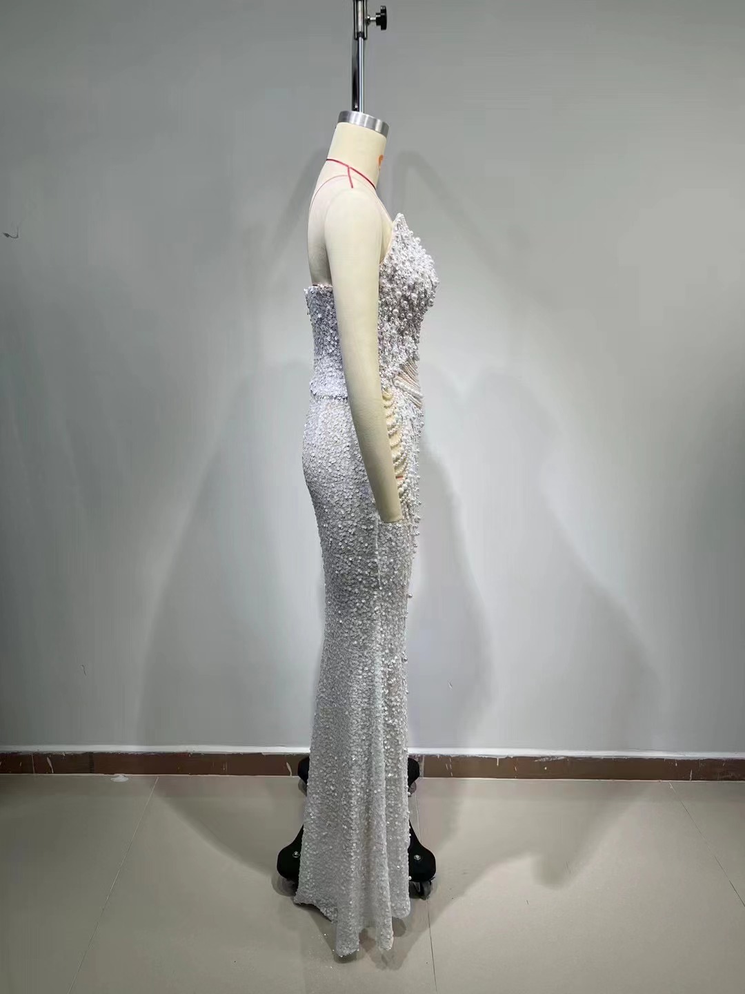 알리익스프레스 특가 블랙 앤 화이트 진주 시리즈 딥 V넥 시스루 메쉬 하이웨이스트 슬리밍 무대/연회용 드레스스토어 가기