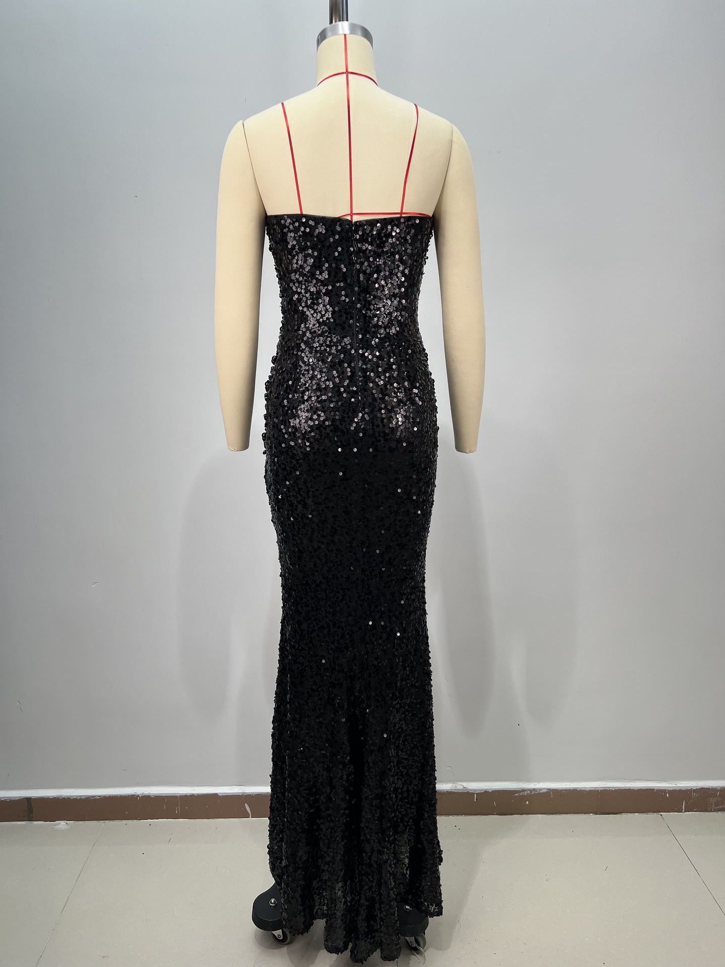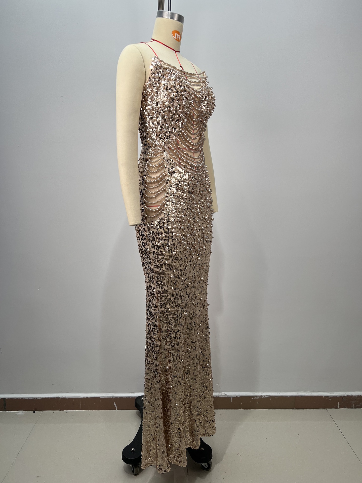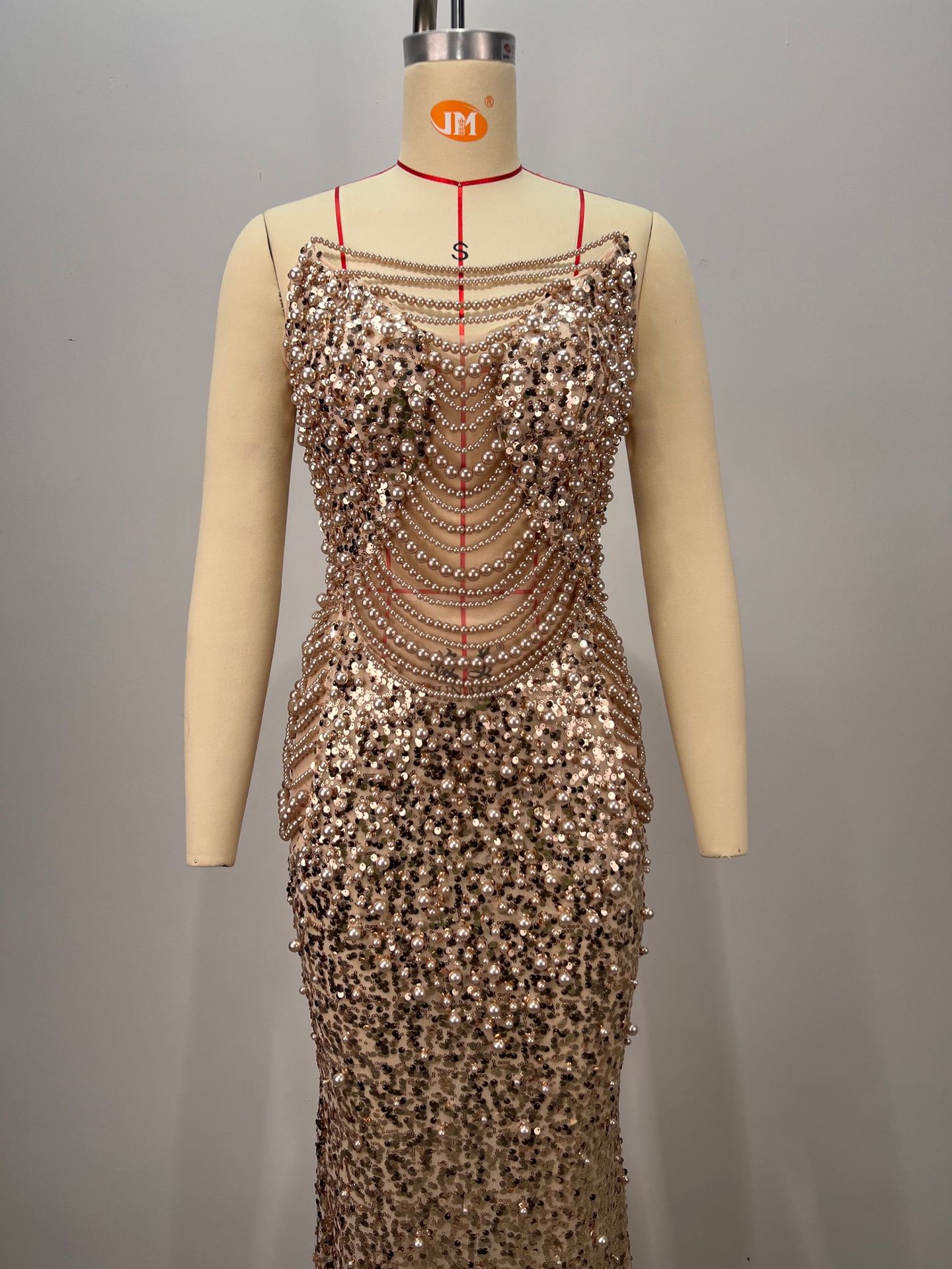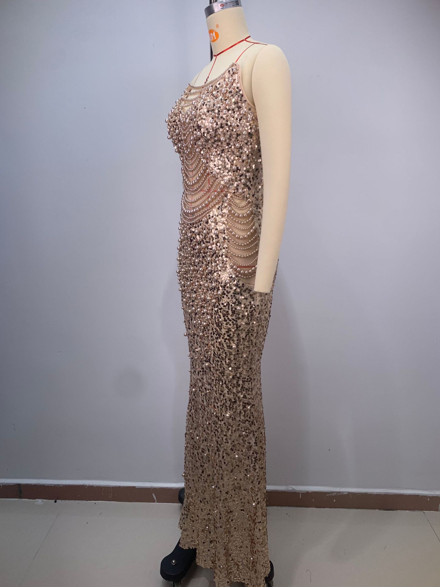 알리익스프레스 특가 블랙 앤 화이트 진주 시리즈 딥 V넥 시스루 메쉬 하이웨이스트 슬리밍 무대/연회용 드레스스토어 가기