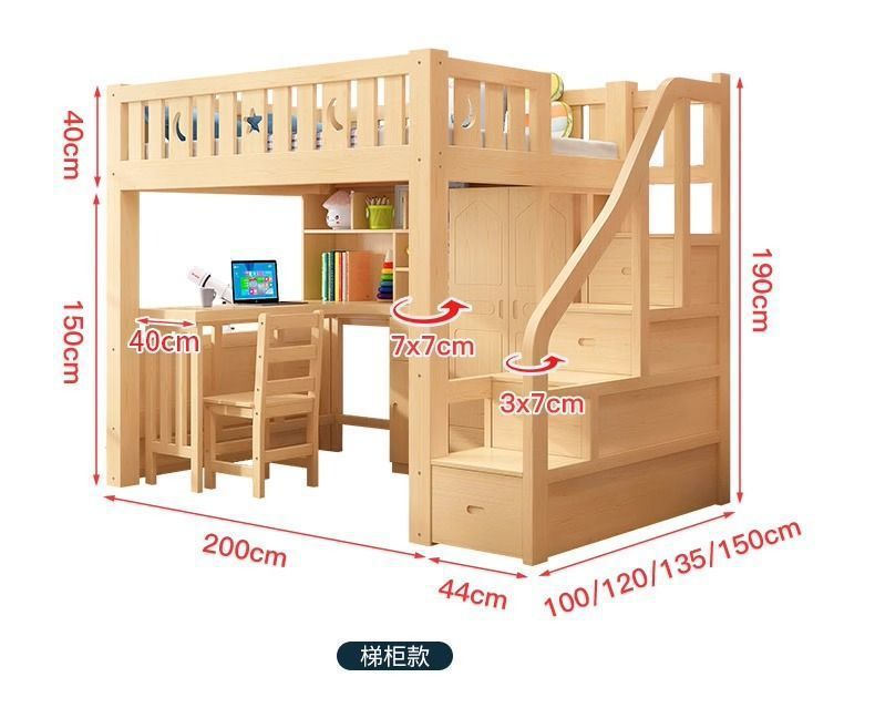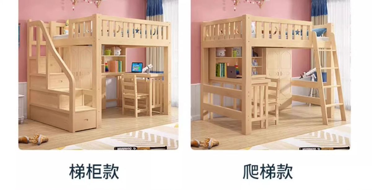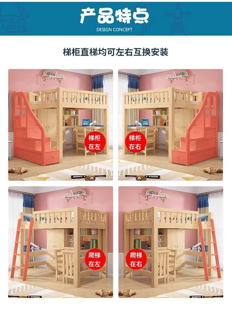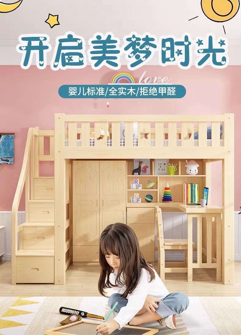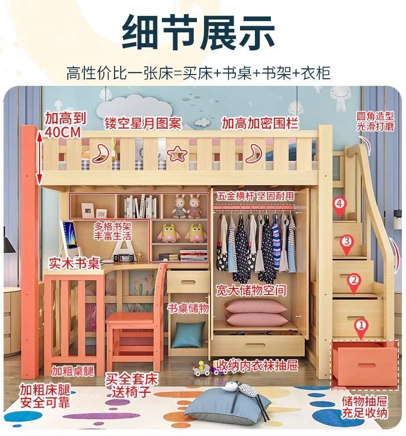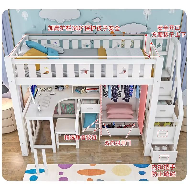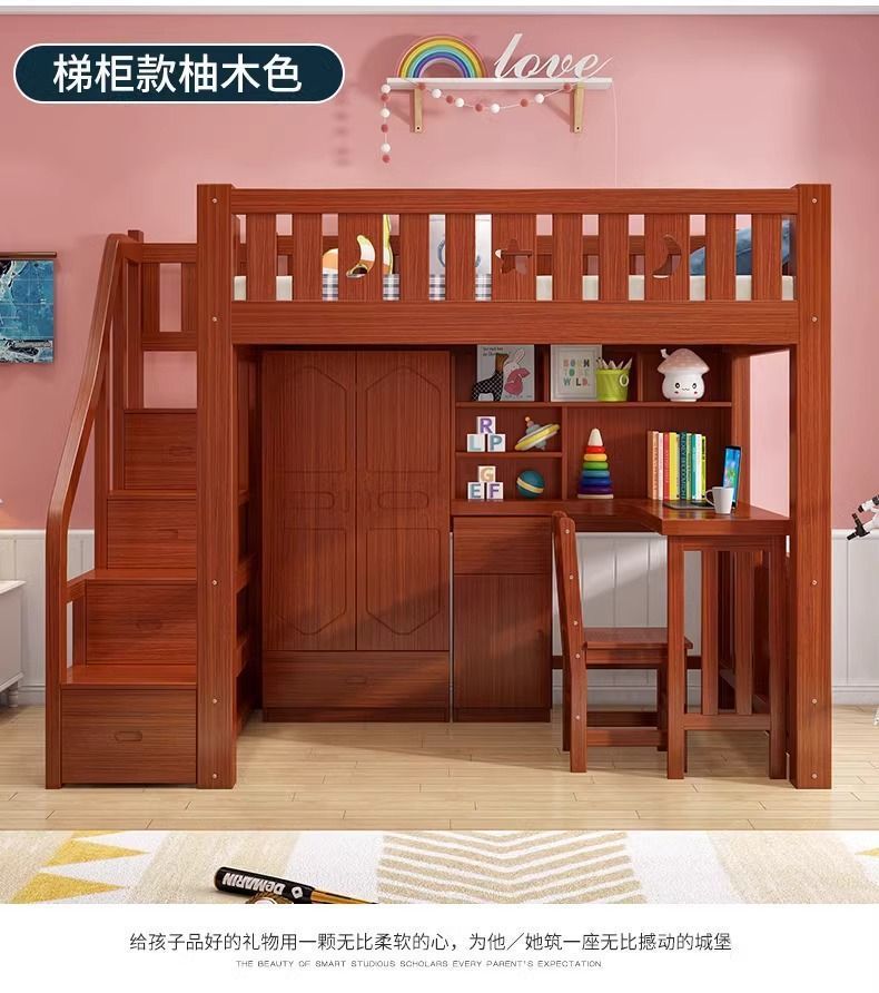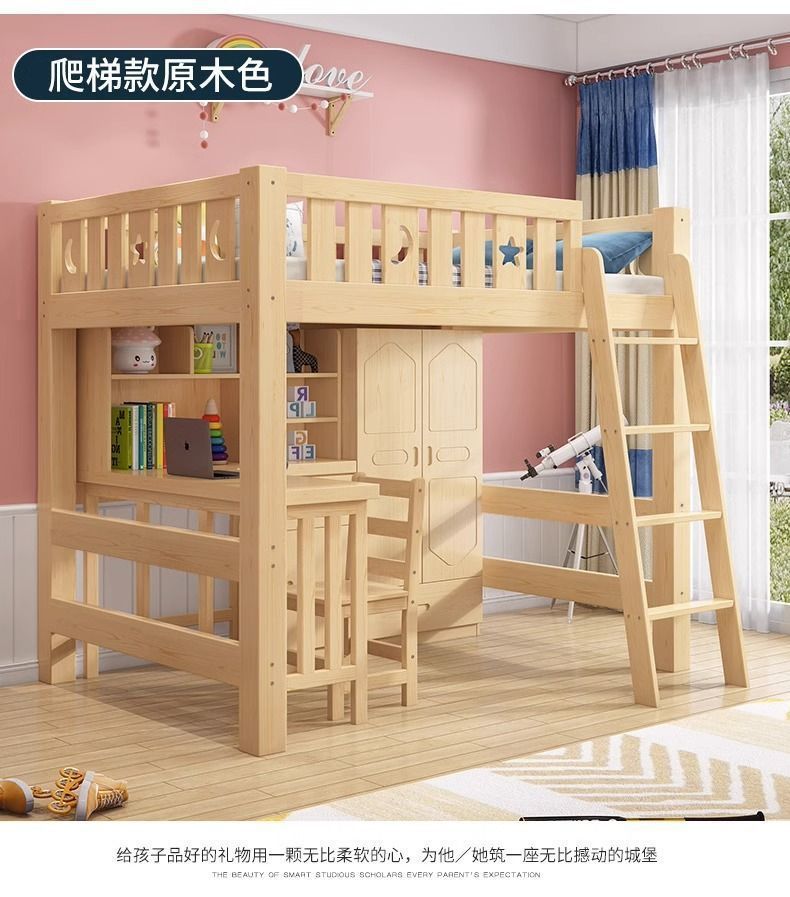 단단한 나무 침대 어린이 낮은 테이블 높고 낮은 침대 통합 조합 옷장 다기능 책상 높은 작은 아파트스토어 가기