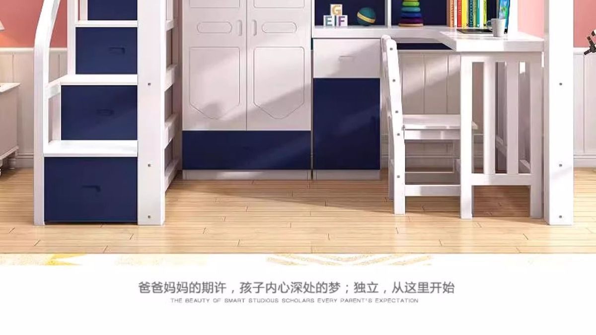 • [설치 포함 + 원목] 흰색과 파란색 사다리 캐비닛 베어 침대