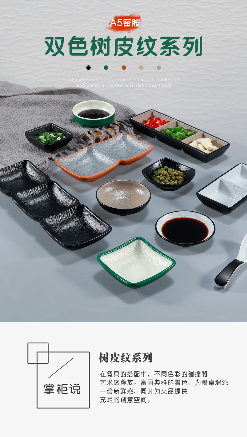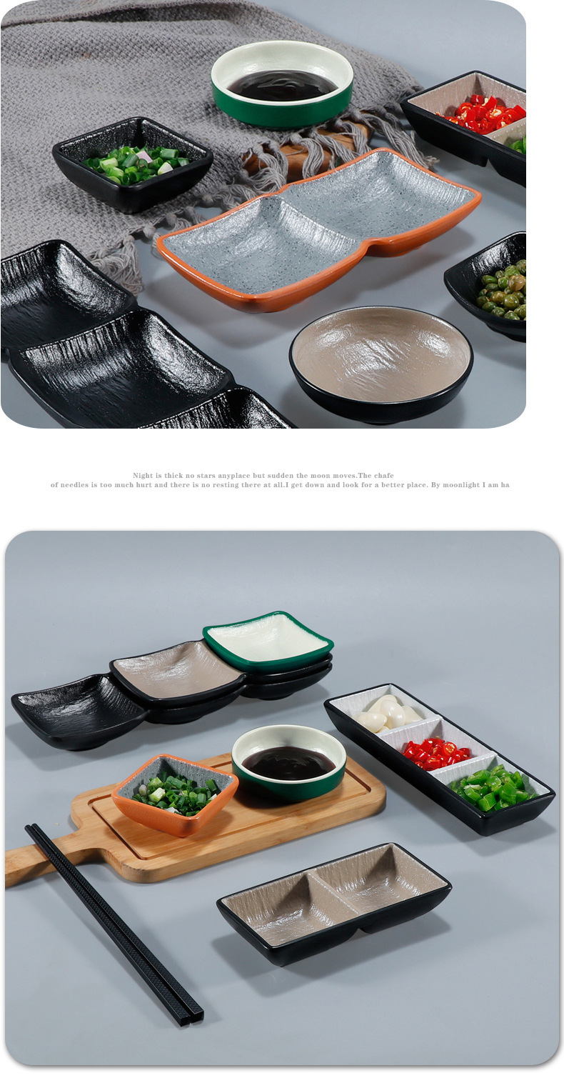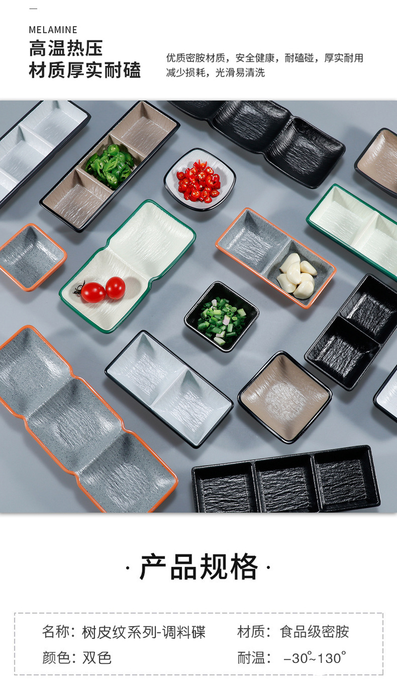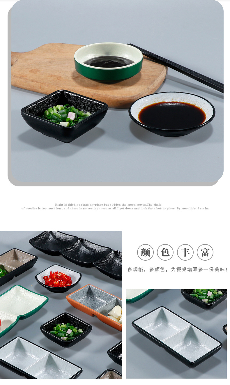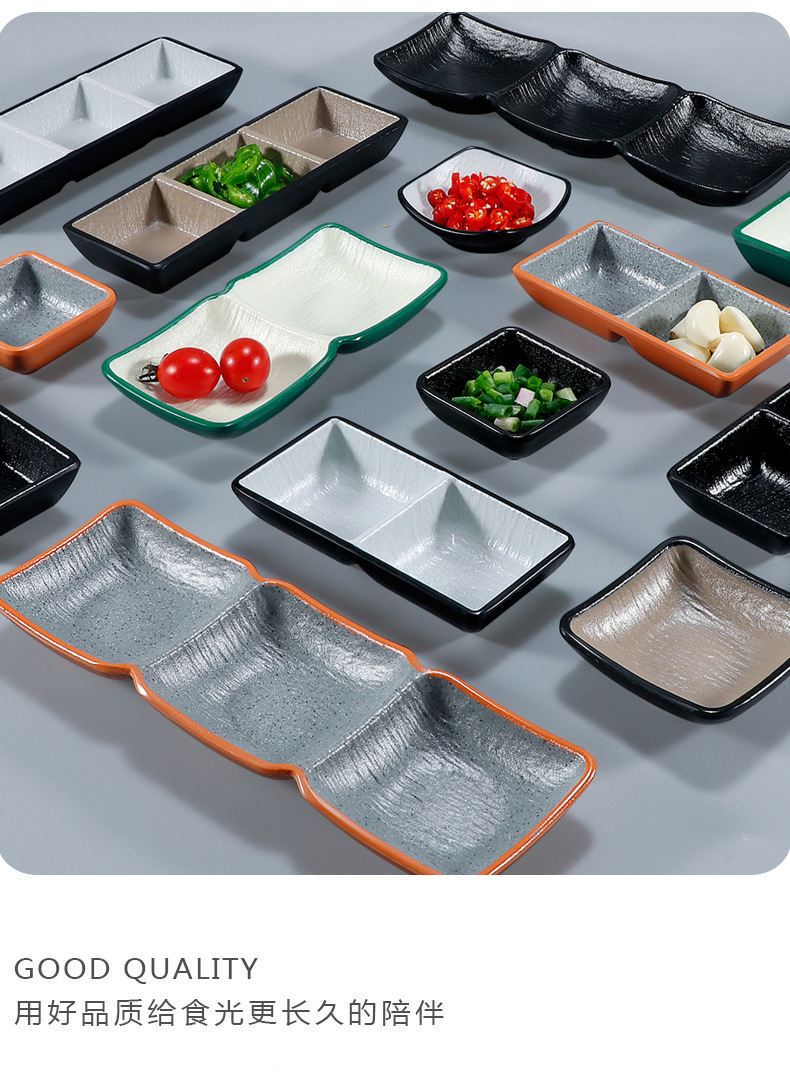 멜라민 맛 요리 일본식 로티 세리 드레싱 접시 소스 접시 상업용 플라스틱 이중 구획 2 또는 3 칸 반찬 요리스토어 가기