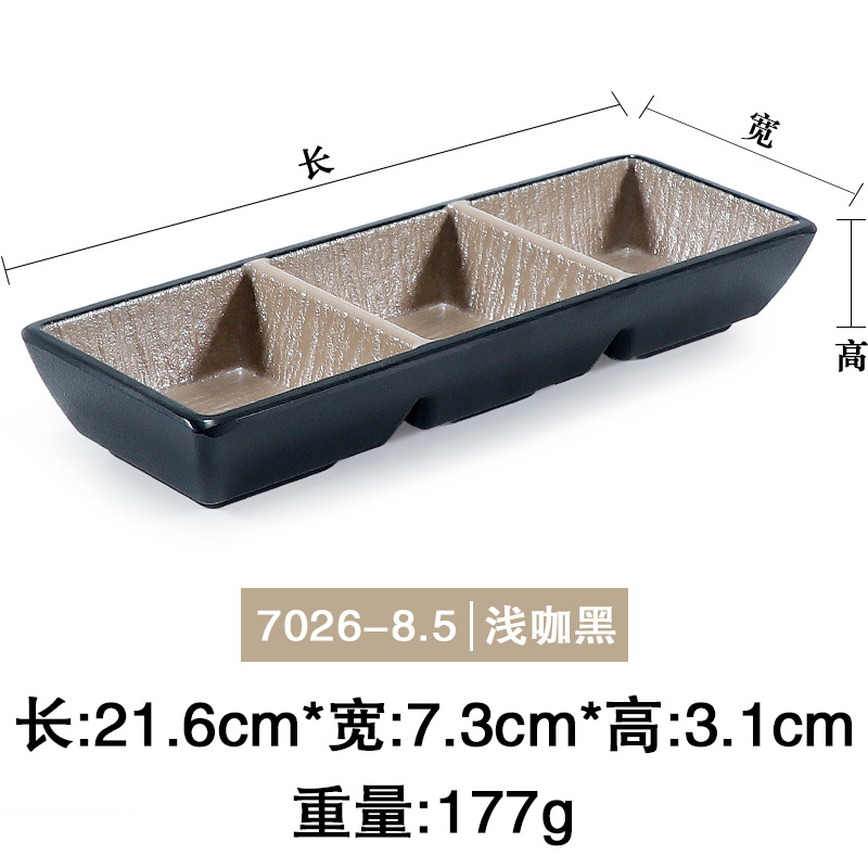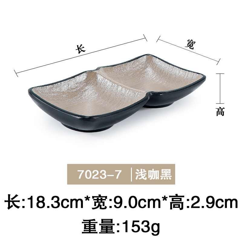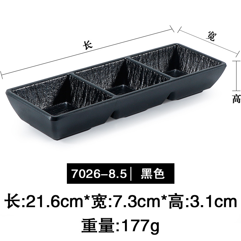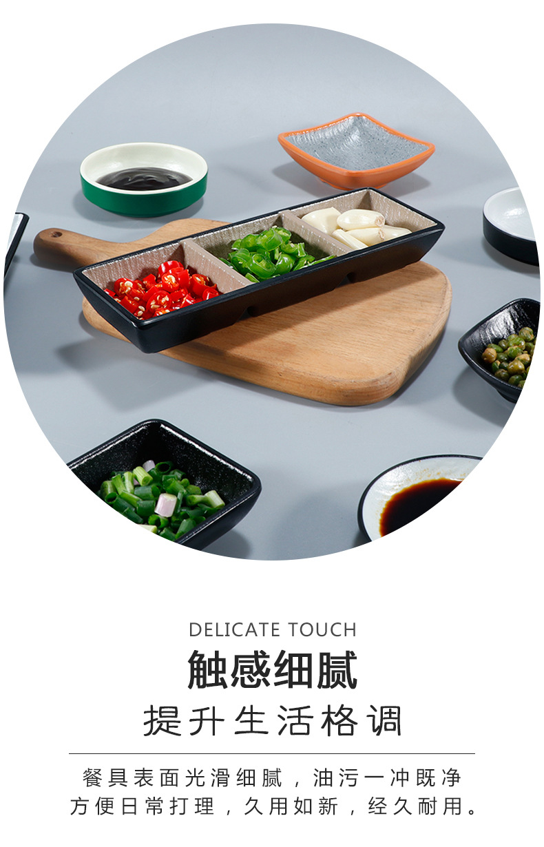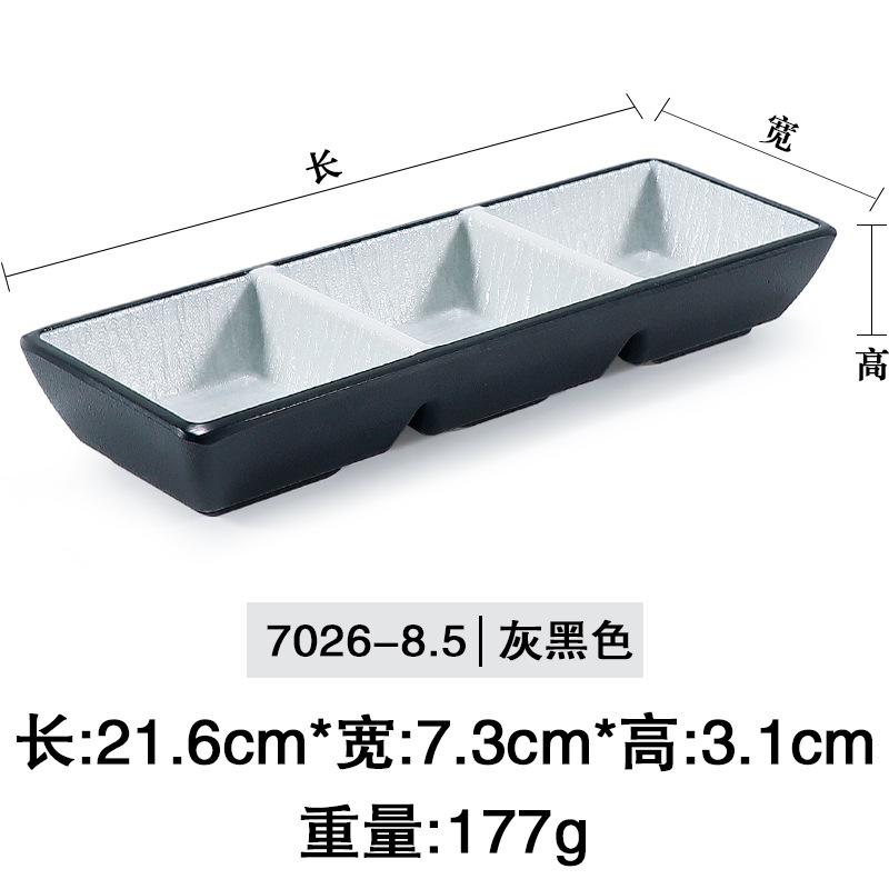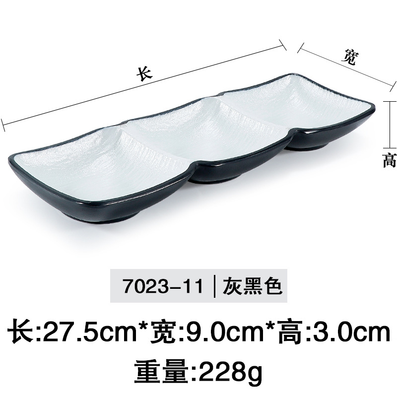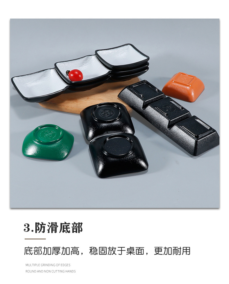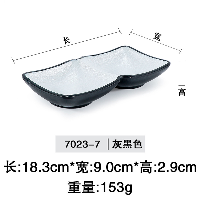 멜라민 맛 요리 일본식 로티 세리 드레싱 접시 소스 접시 상업용 플라스틱 이중 구획 2 또는 3 칸 반찬 요리스토어 가기