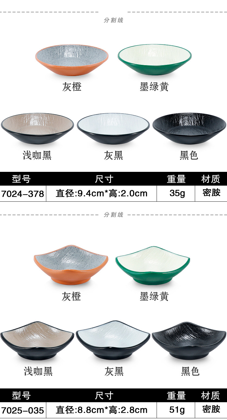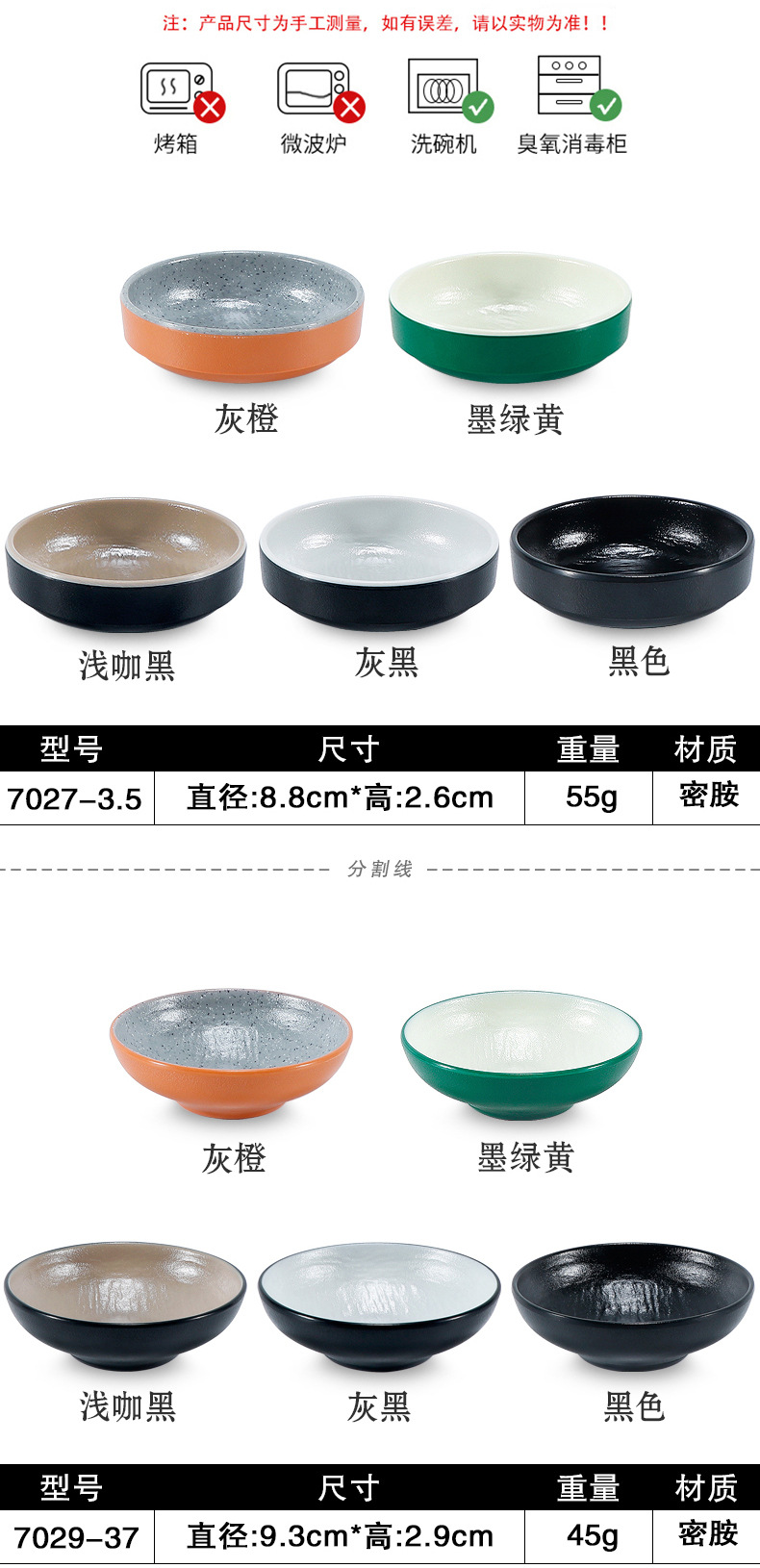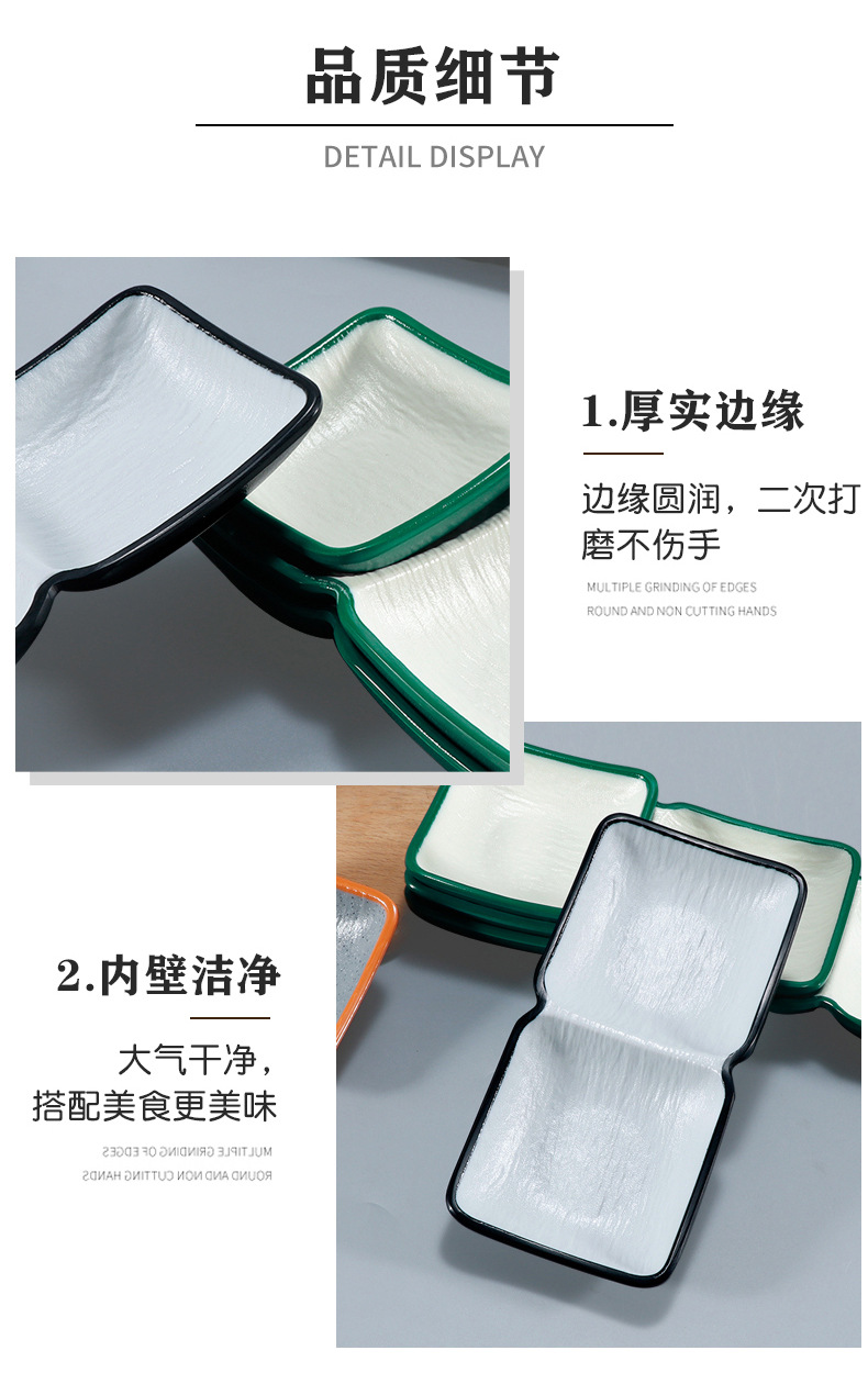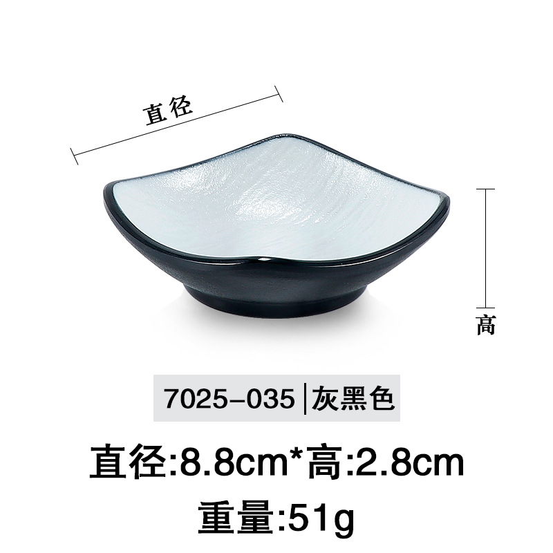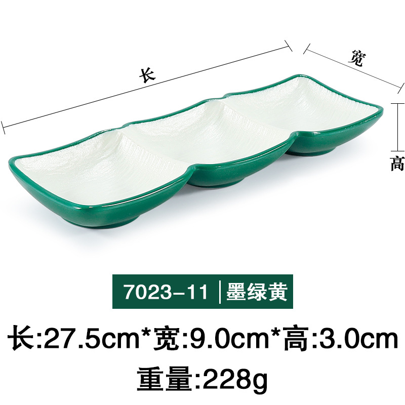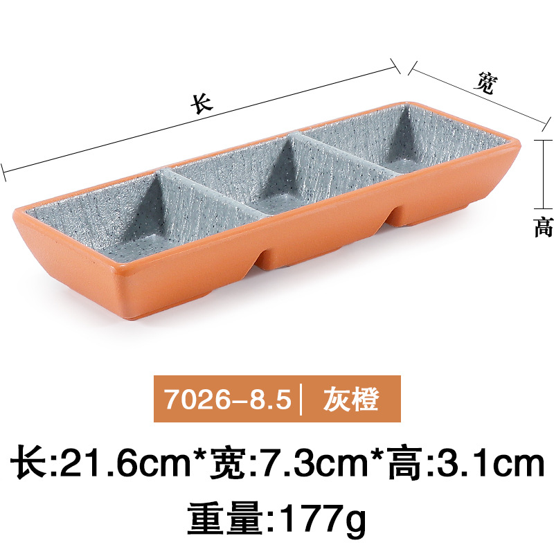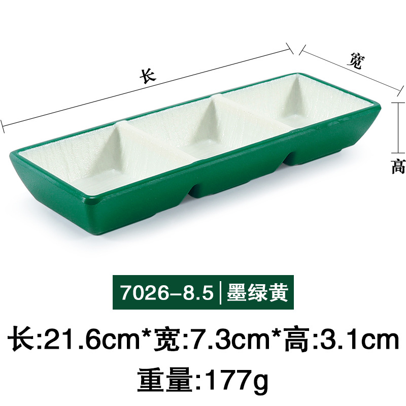 멜라민 맛 요리 일본식 로티 세리 드레싱 접시 소스 접시 상업용 플라스틱 이중 구획 2 또는 3 칸 반찬 요리스토어 가기