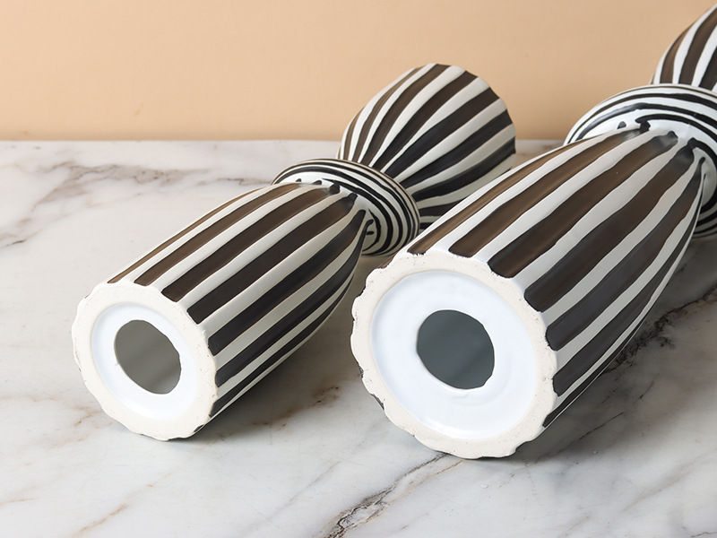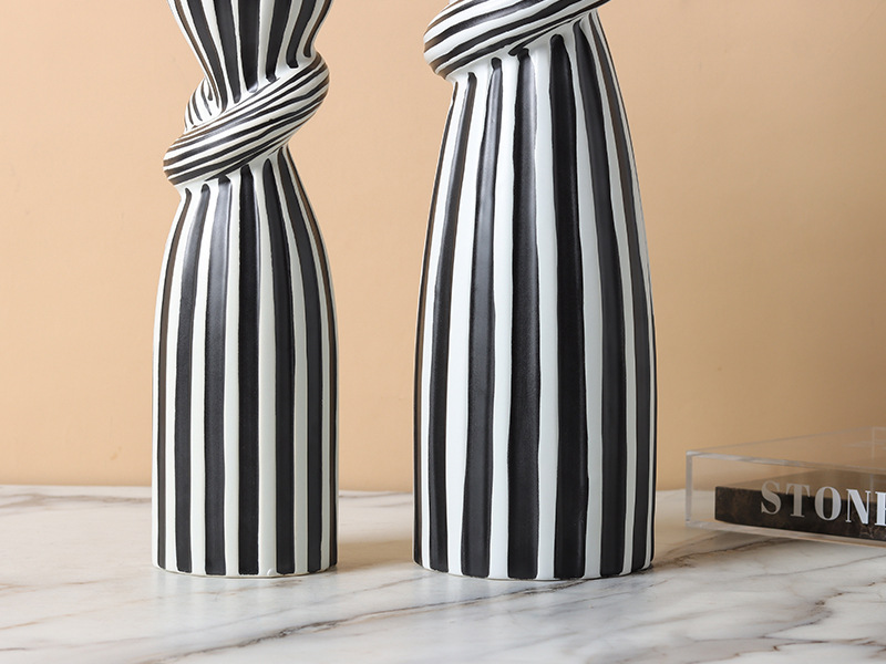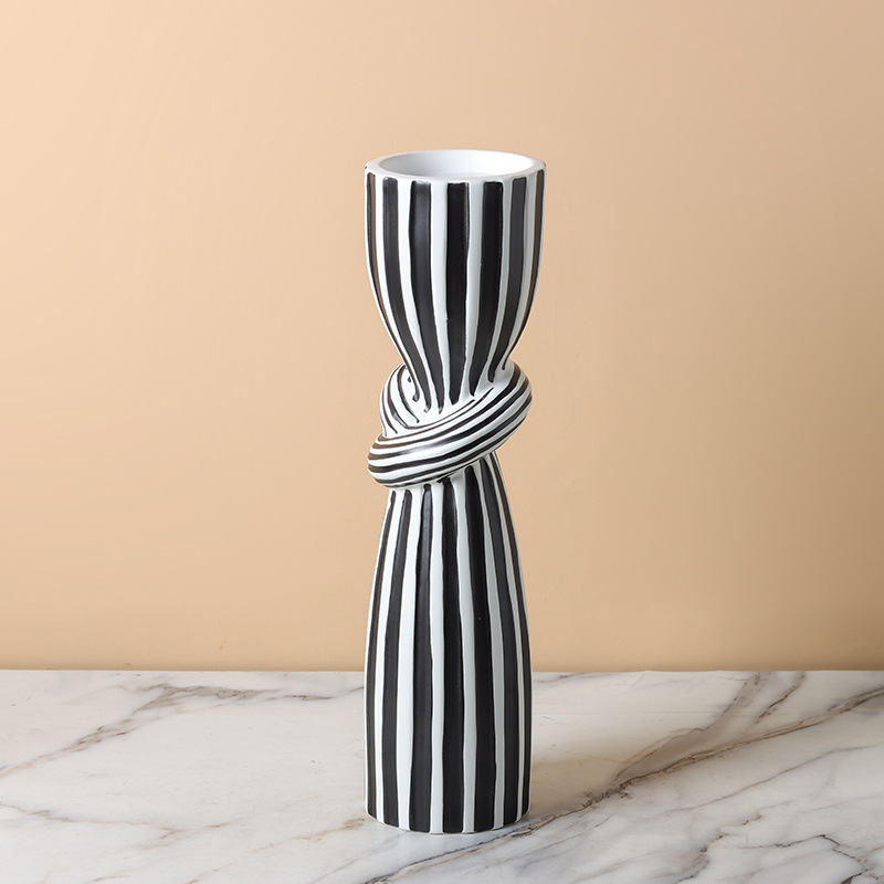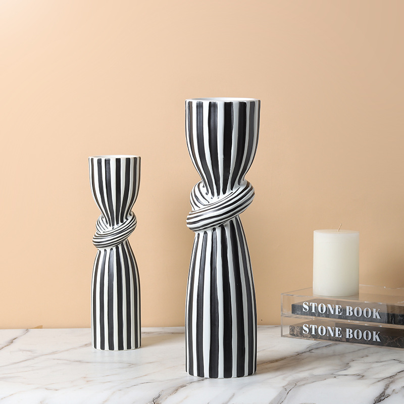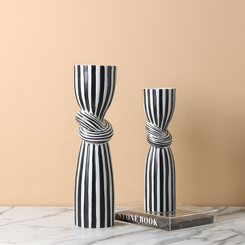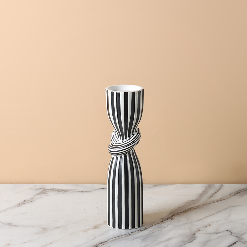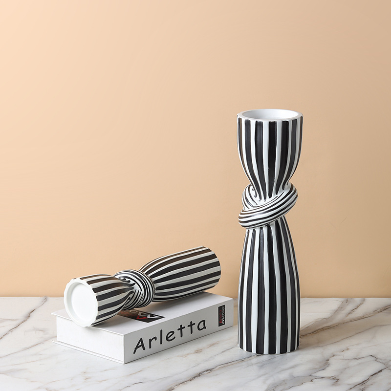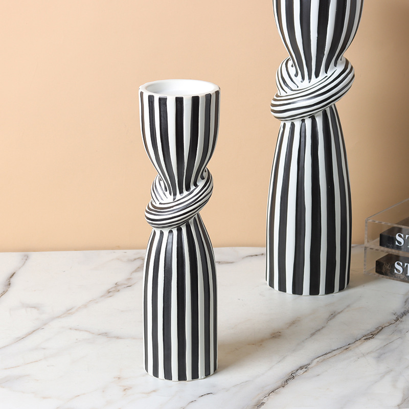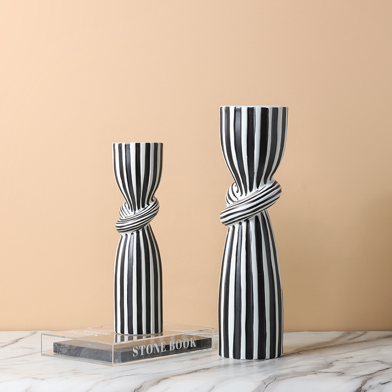 현대 간단한 흑백 줄무늬 싱크 캔들 스틱 장식품 창조적 인 홈 부드러운 장식 거실 식탁 모델 룸스토어 가기