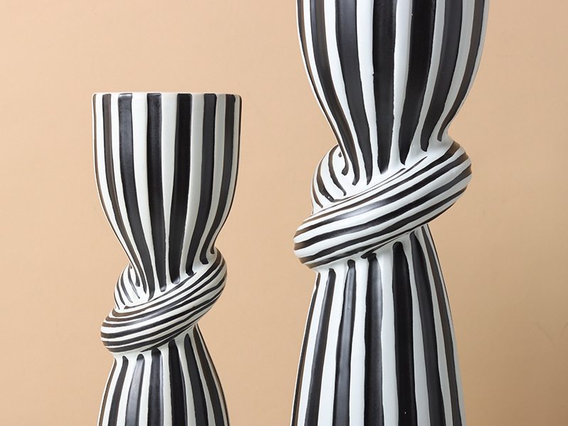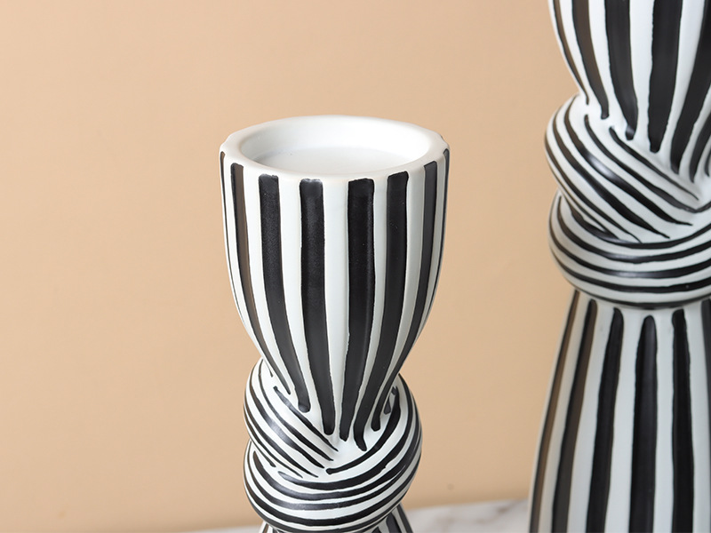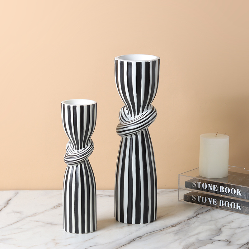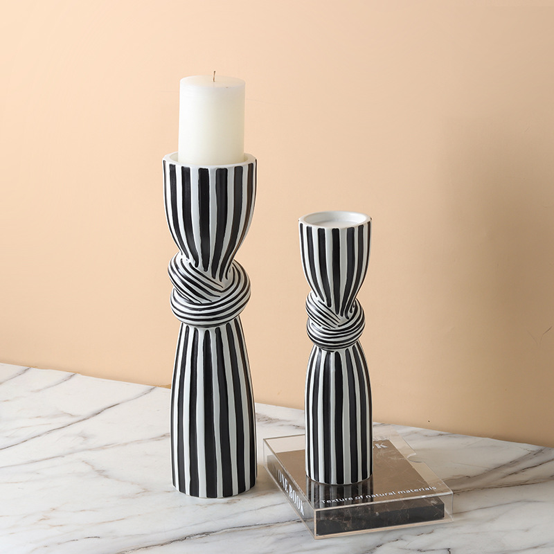 현대 간단한 흑백 줄무늬 싱크 캔들 스틱 장식품 창조적 인 홈 부드러운 장식 거실 식탁 모델 룸