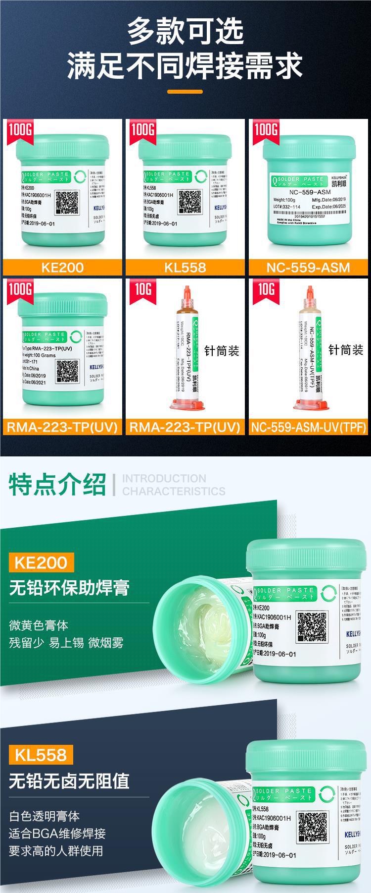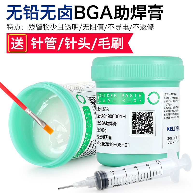 • KL558 무연 할로겐 프리 솔더 페이스트 100g에는 브러시 + 튜브가 함께 제공됩니다.