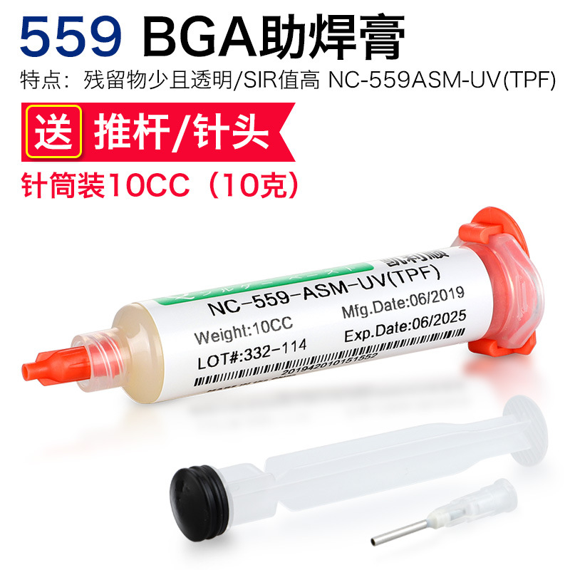 • NC559UV-TPF 주사기 플럭스 페이스트 10g에는 주사기가 함께 제공됩니다.
