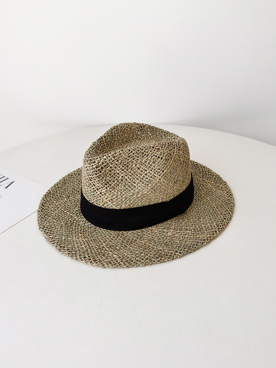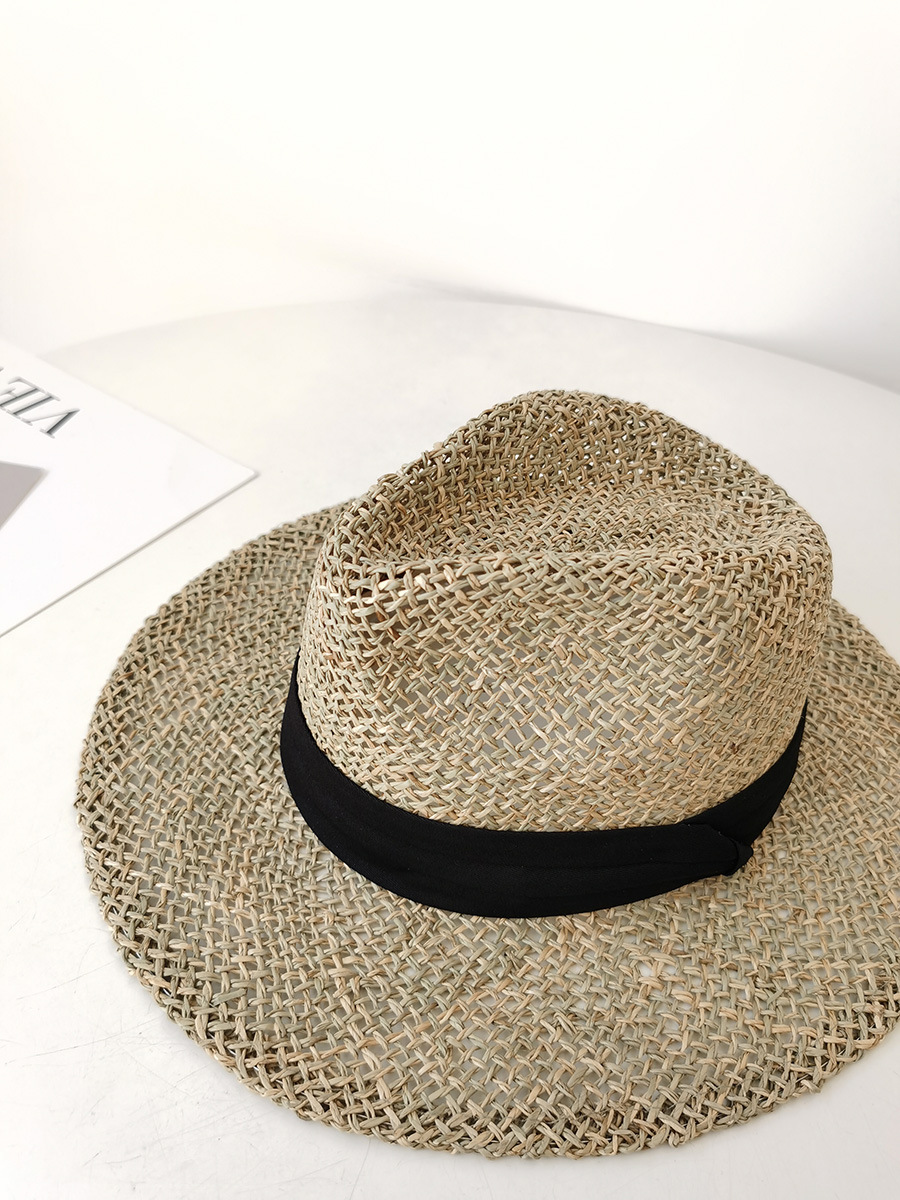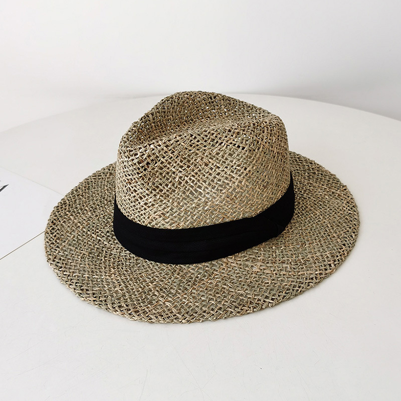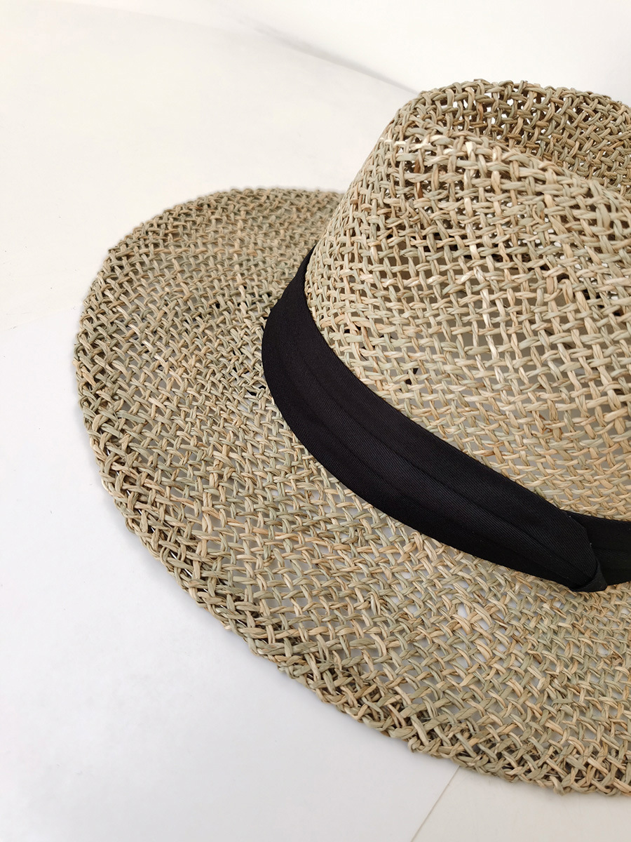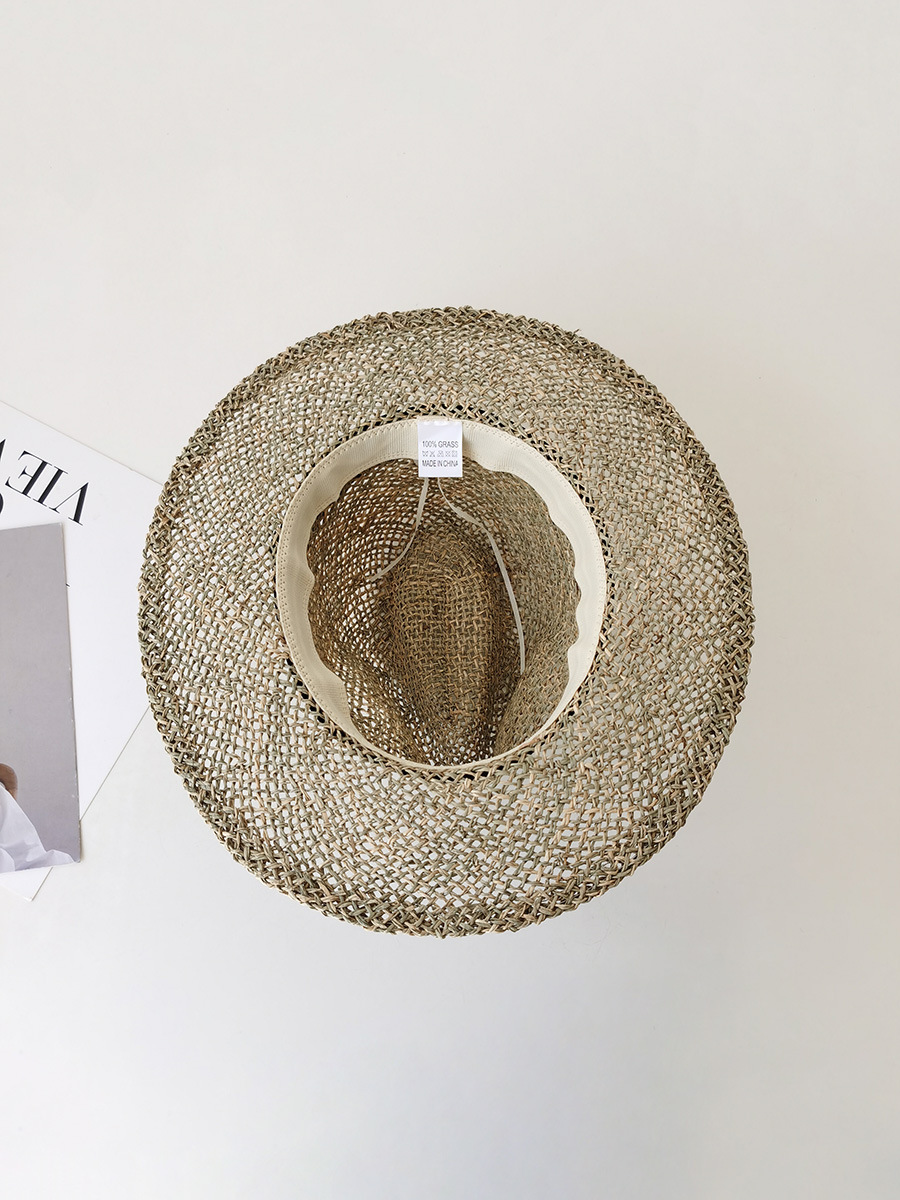 자연 짠 잔디 중공 챙이 평평한 파나마 밀짚 모자 여성 해변 휴가 여행 데님 여름 토퍼 모자스토어 가기