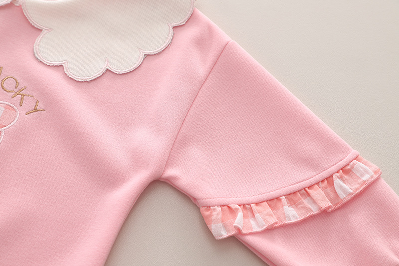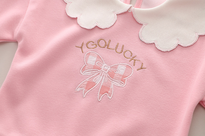 • LFL-긴 소매 자수 칼라 격자 활 핑크