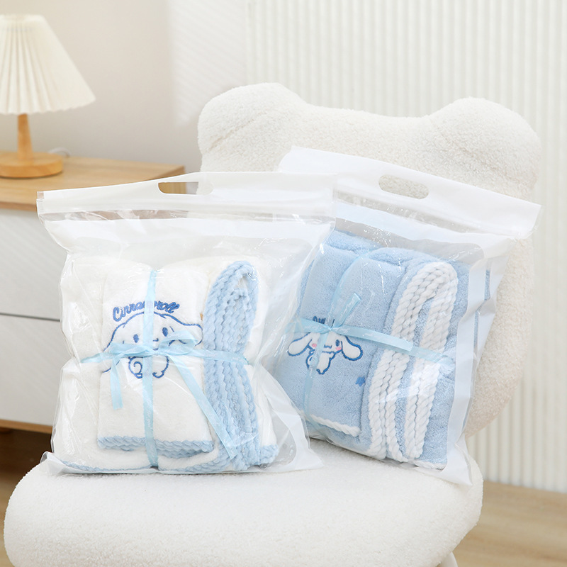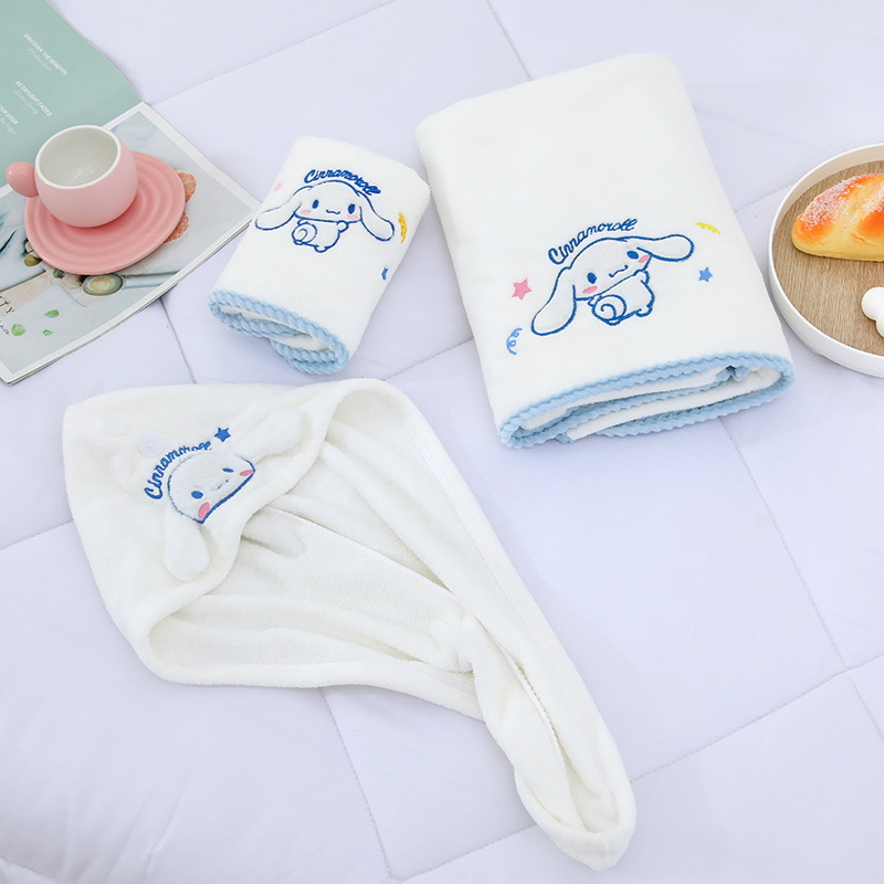 제조 업체 도매 만화 계피 개 수건 세트 흡수성 속건성 보푸라기가없는 귀여운 쿠로미 목욕 수건 드라이 헤어 캡