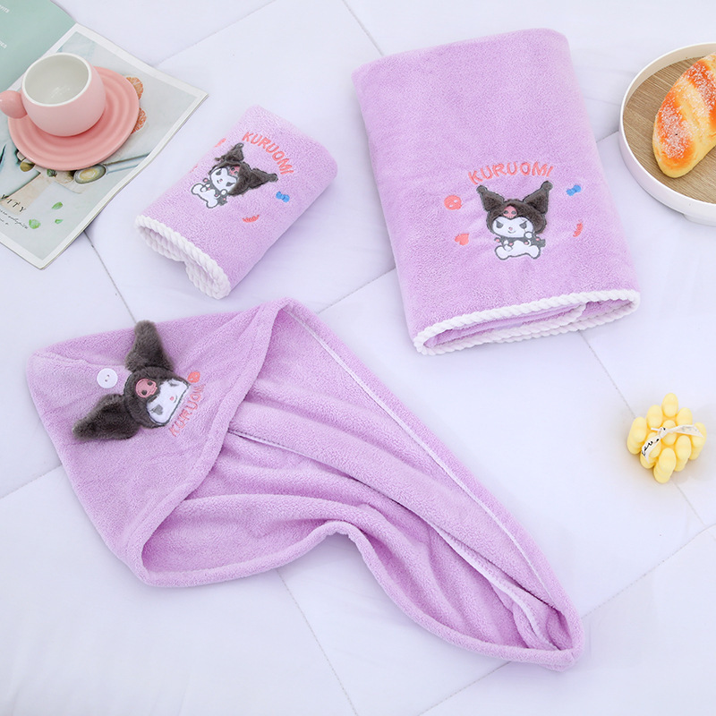 제조 업체 도매 만화 계피 개 수건 세트 흡수성 속건성 보푸라기가없는 귀여운 쿠로미 목욕 수건 드라이 헤어 캡스토어 가기