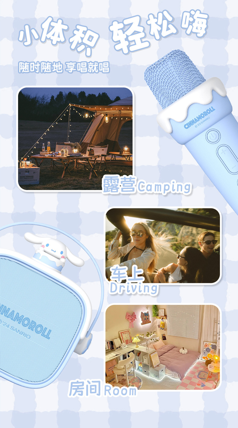 산리오 시나모롤 노래방 블루투스 스피커 블루투스 미니 스피커 서브우퍼 무선 마이크 어린이용스토어 가기