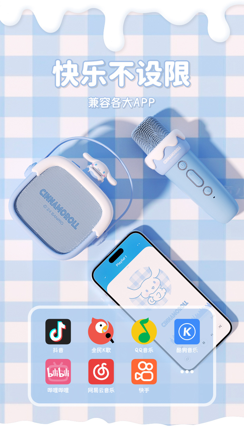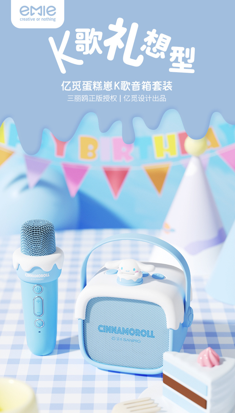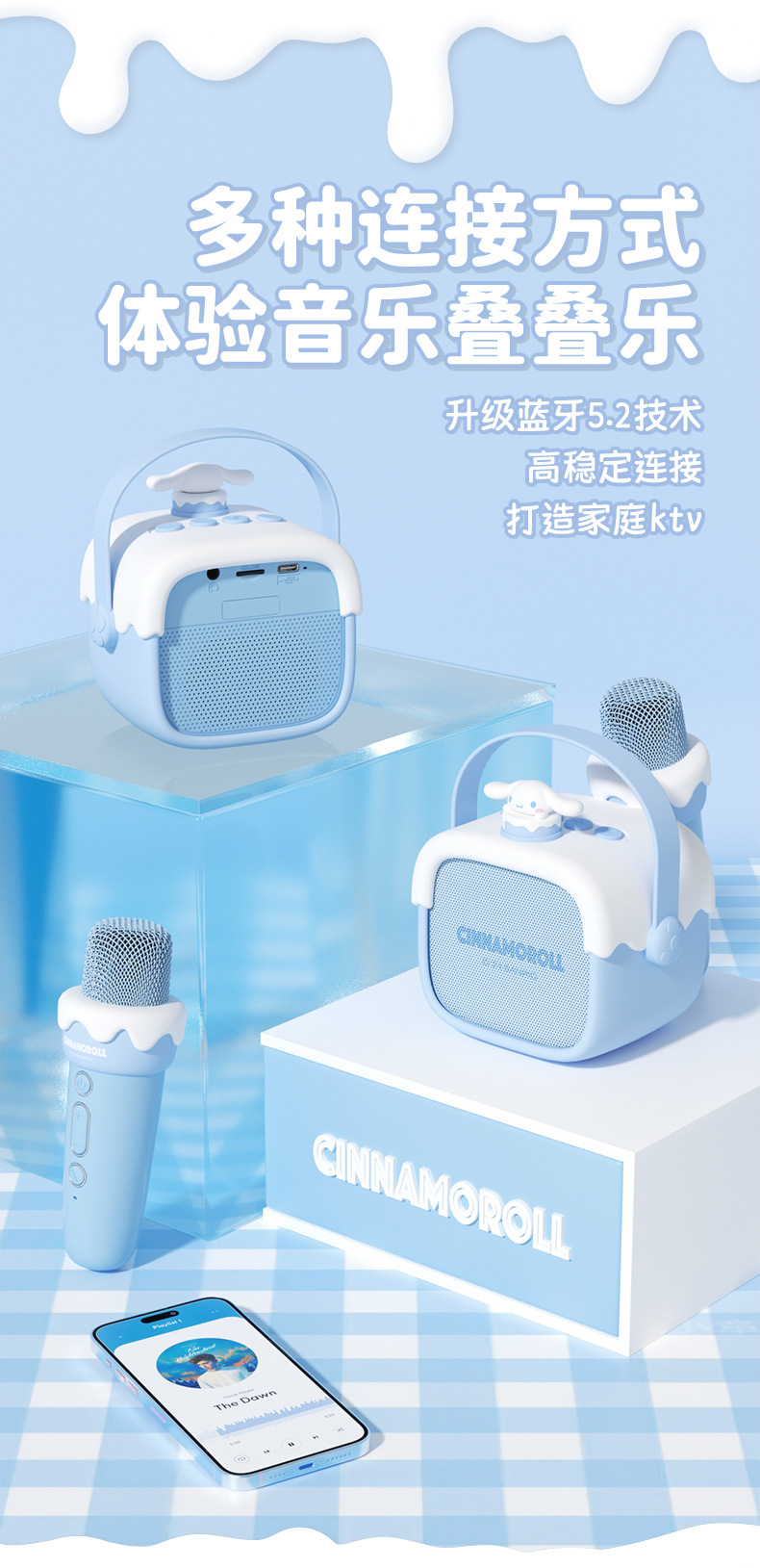 산리오 시나모롤 노래방 블루투스 스피커 블루투스 미니 스피커 서브우퍼 무선 마이크 어린이용