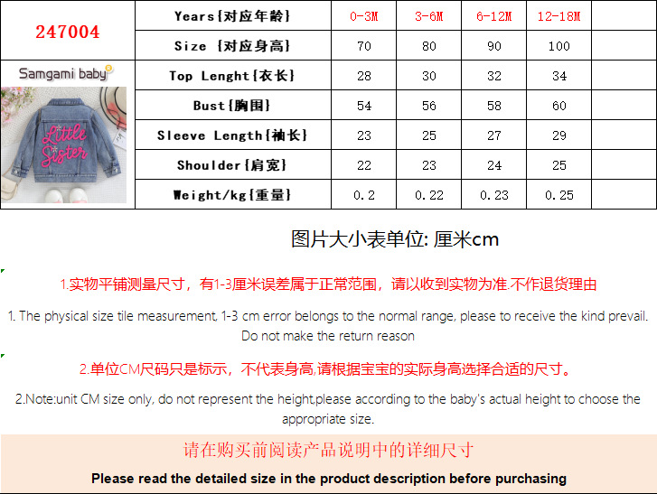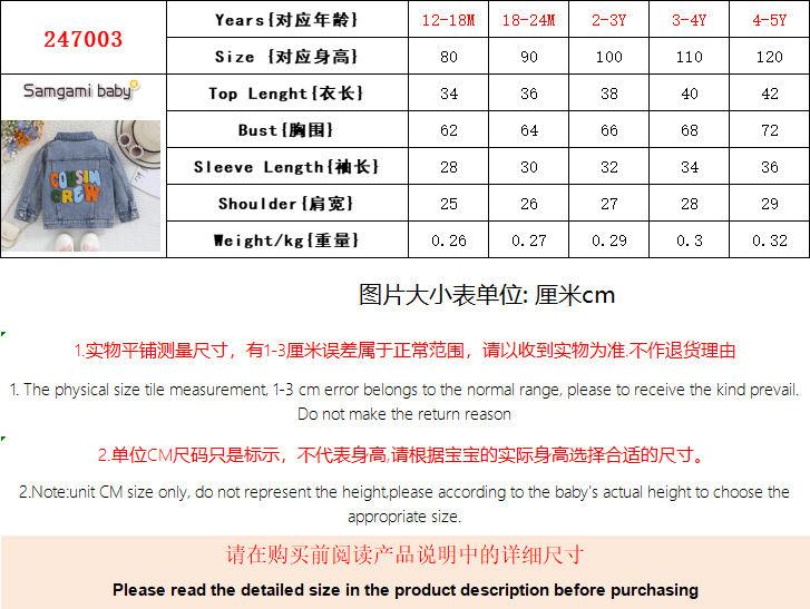 SAMGAMIBABY 국경 아동복 어린이 데님 코트 가을 남학생과 여학생을위한 새로운 형제 자매 옷스토어 가기