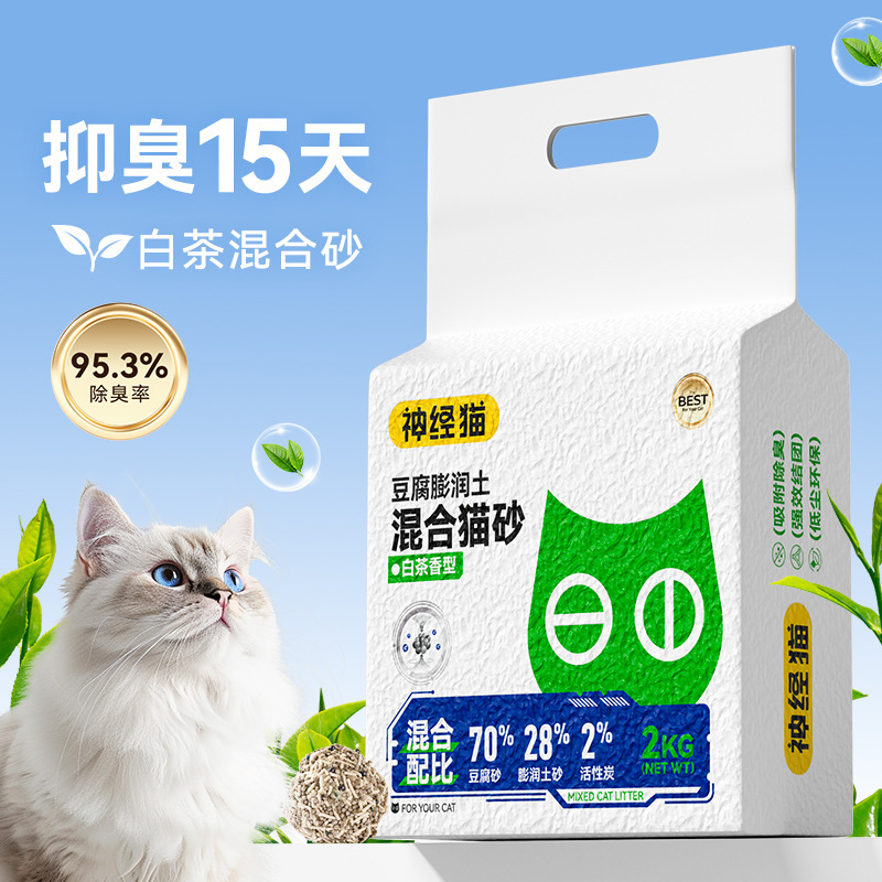 神经猫活性炭六合一混合猫砂清洁除臭豆腐膨润土猫砂非无尘大批量