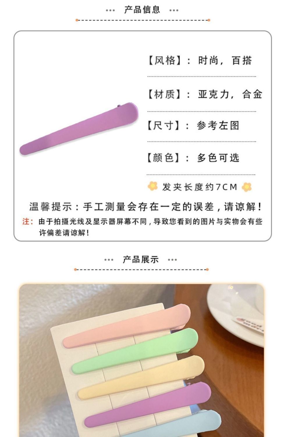 한국 버전의 봄 컬러 젖빛 오리 지폐 클립 사이드 클립 이발소 헤어 클립 간단한 메이크업 세척 탑 클립 앞머리 클립 여성