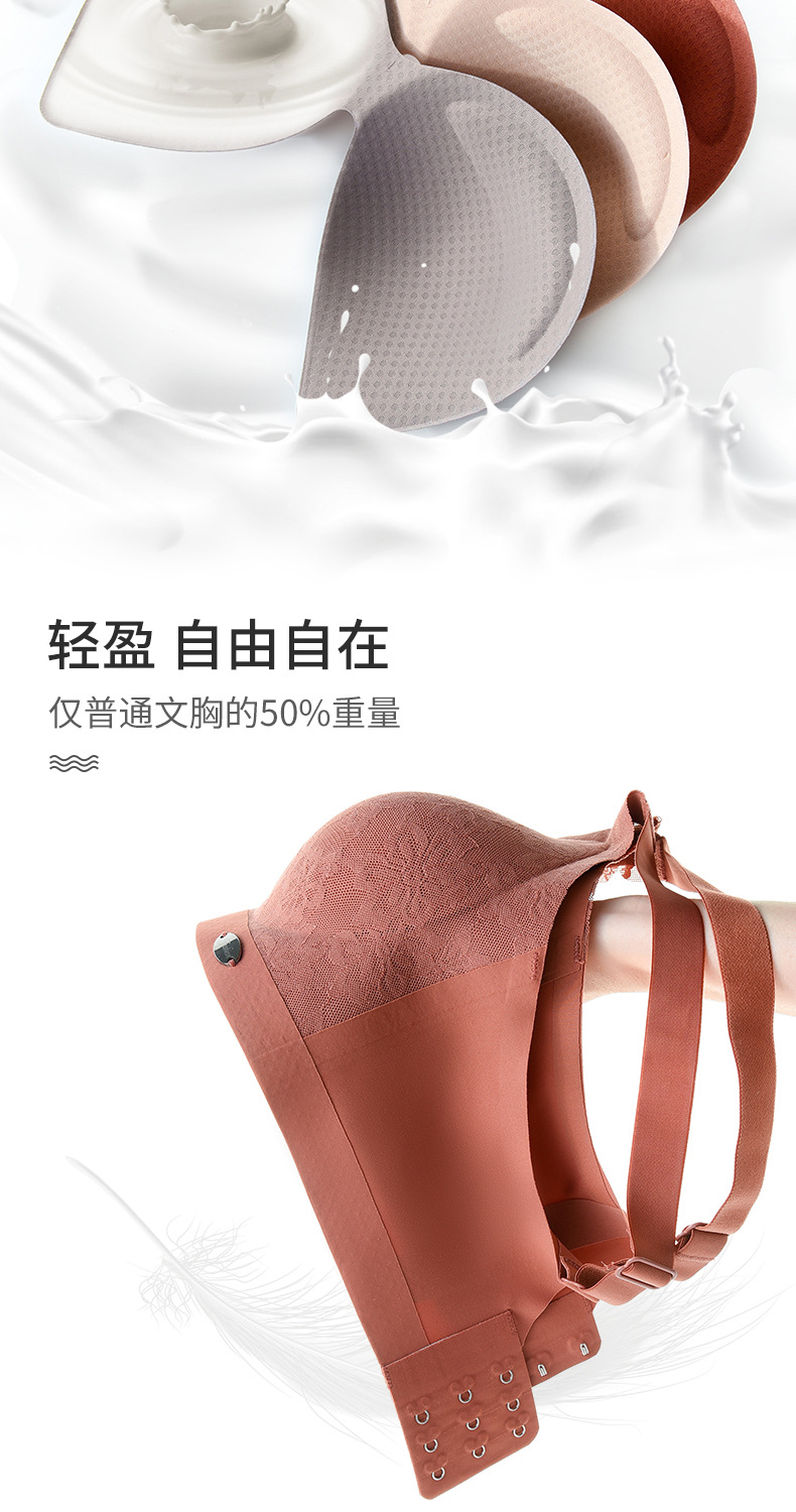 큰 가슴을 작아 보이게 하는 탈부착 가능한 패드, 노와이어, 흔적 없는 여성용 속옷, 옆 가슴을 모아주는 얇은 브라