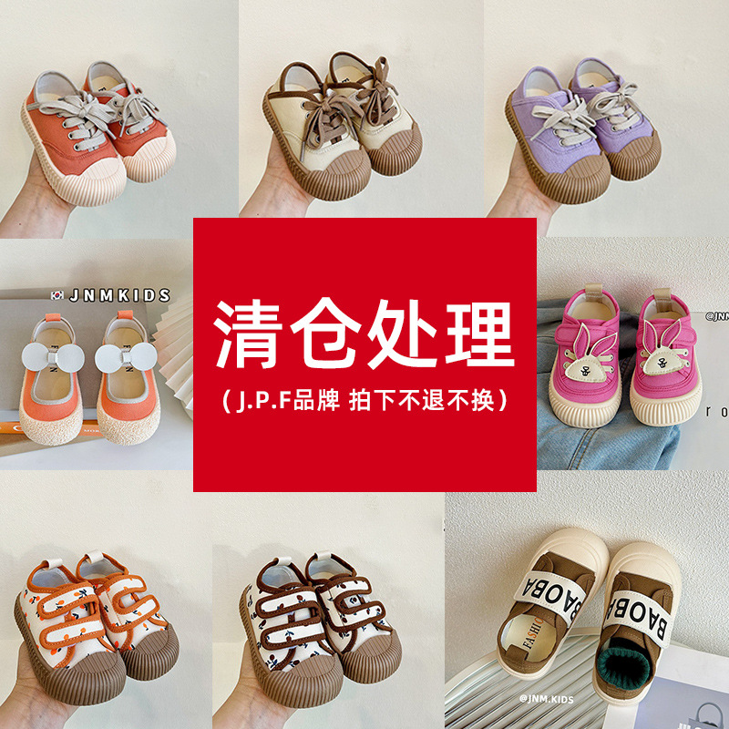 통관 없음 반품 변경 없음 어린이 캔버스 신발 봄과 가을 남학생과 여학생을위한 로우 탑 보드 신발 부드러운 밑창 유치원 아기 실내 신발