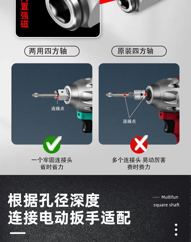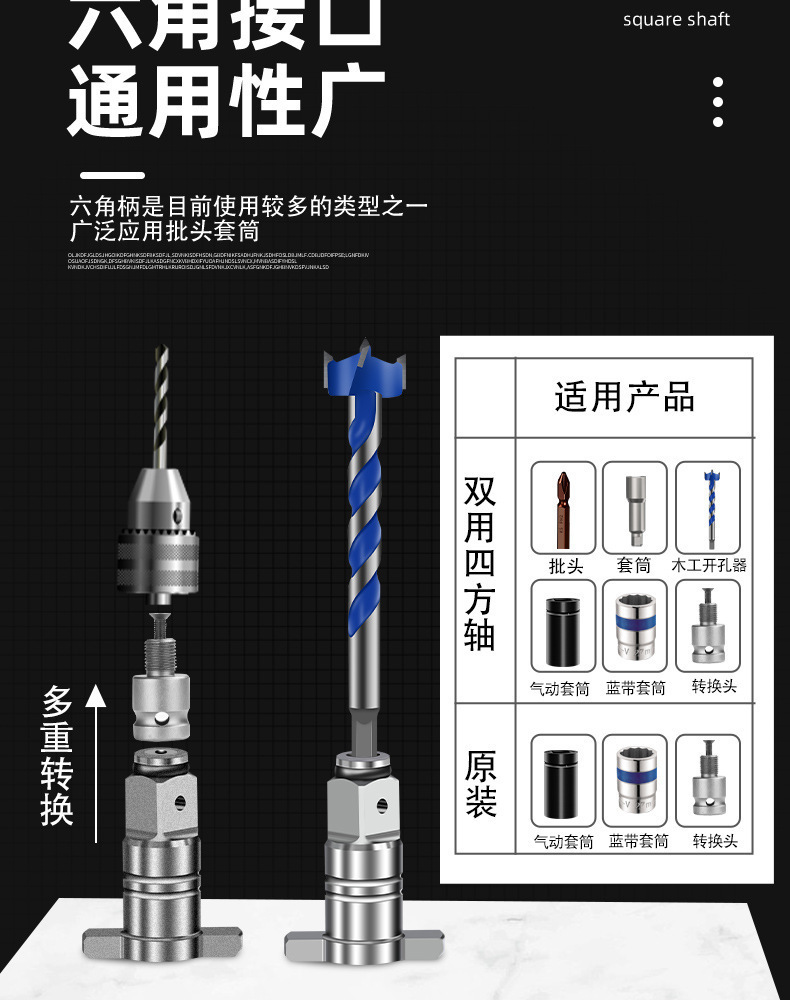 전기 렌치 어댑터 이중 목적 사각형 샤프트 수정 배치 헤드 드릴 비트 다목적 어댑터 다기능 액세서리