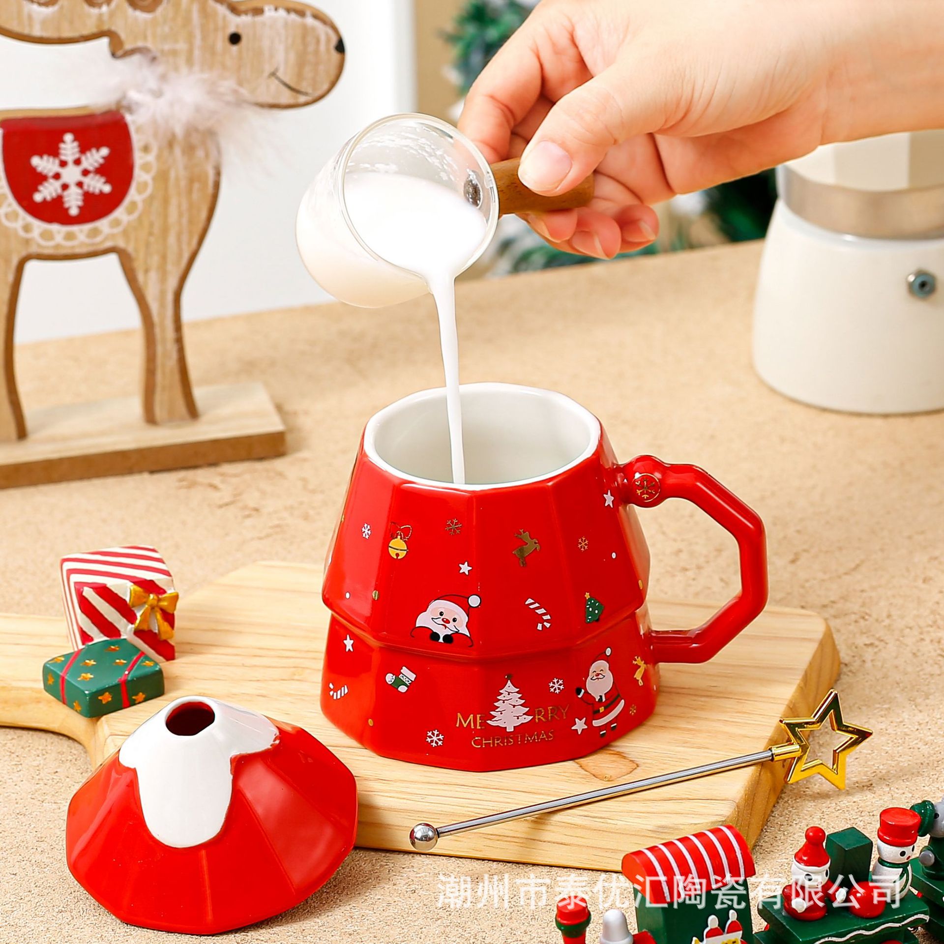 창조적 인 크리스마스 트리 세라믹 머그잔 대형 커피 컵 뚜껑 스푼과 함께 선물 컵 높은 색 가치 물 컵