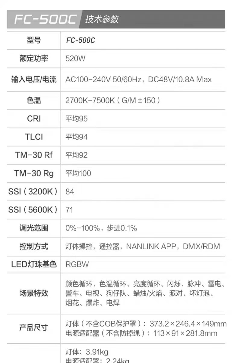 Nanguang FC-500C 풀 컬러 고출력 LED 컬러 사진 채우기 빛 RGB 조절 색상 온도 컬러 라이브 룸