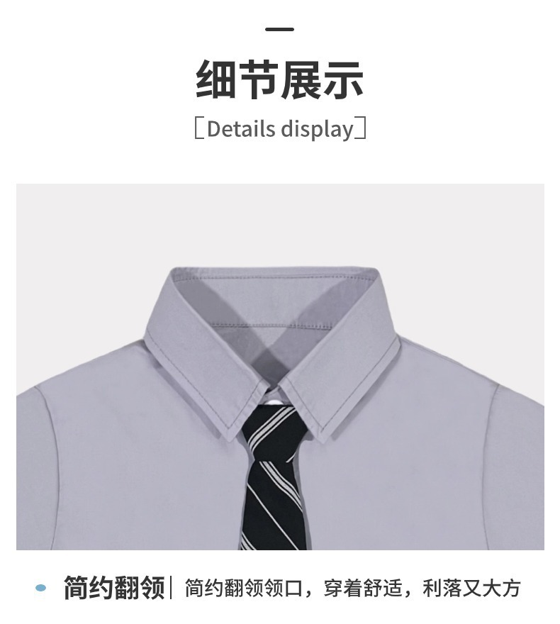• 블루 짧은 소매 셔츠 블랙 스트라이프 타이