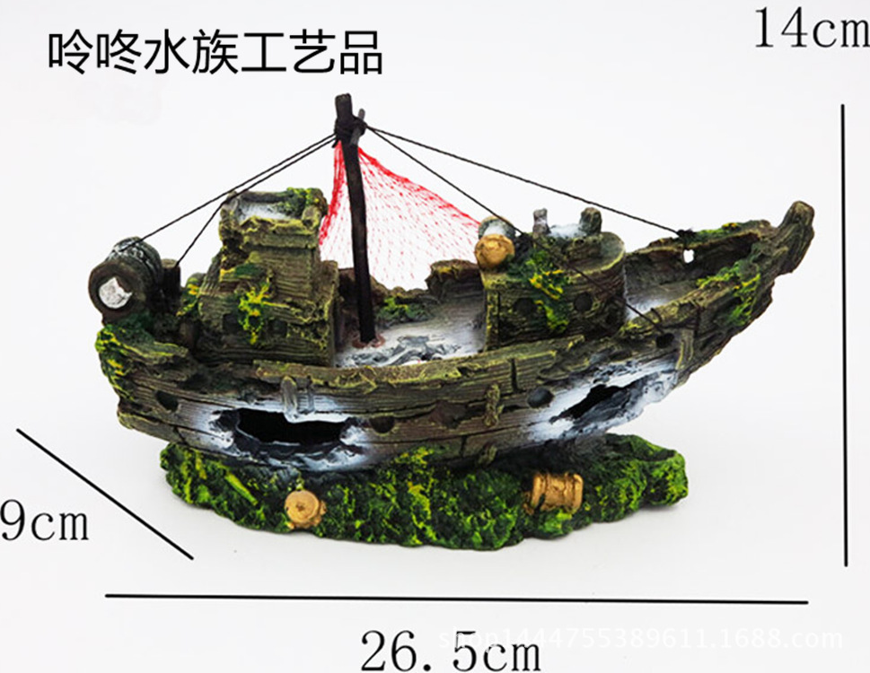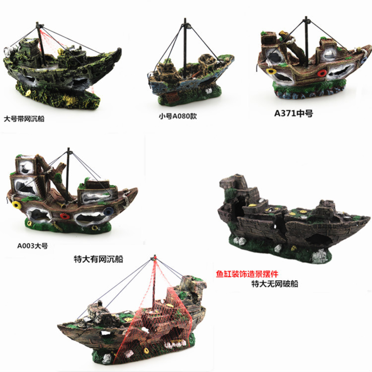 해적선 수족관 풍경 물고기 탱크 풍경 장식 선박 탈출 집 장식품 시뮬레이션 선박 수지 난파선 작은 그물 보트스토어 가기