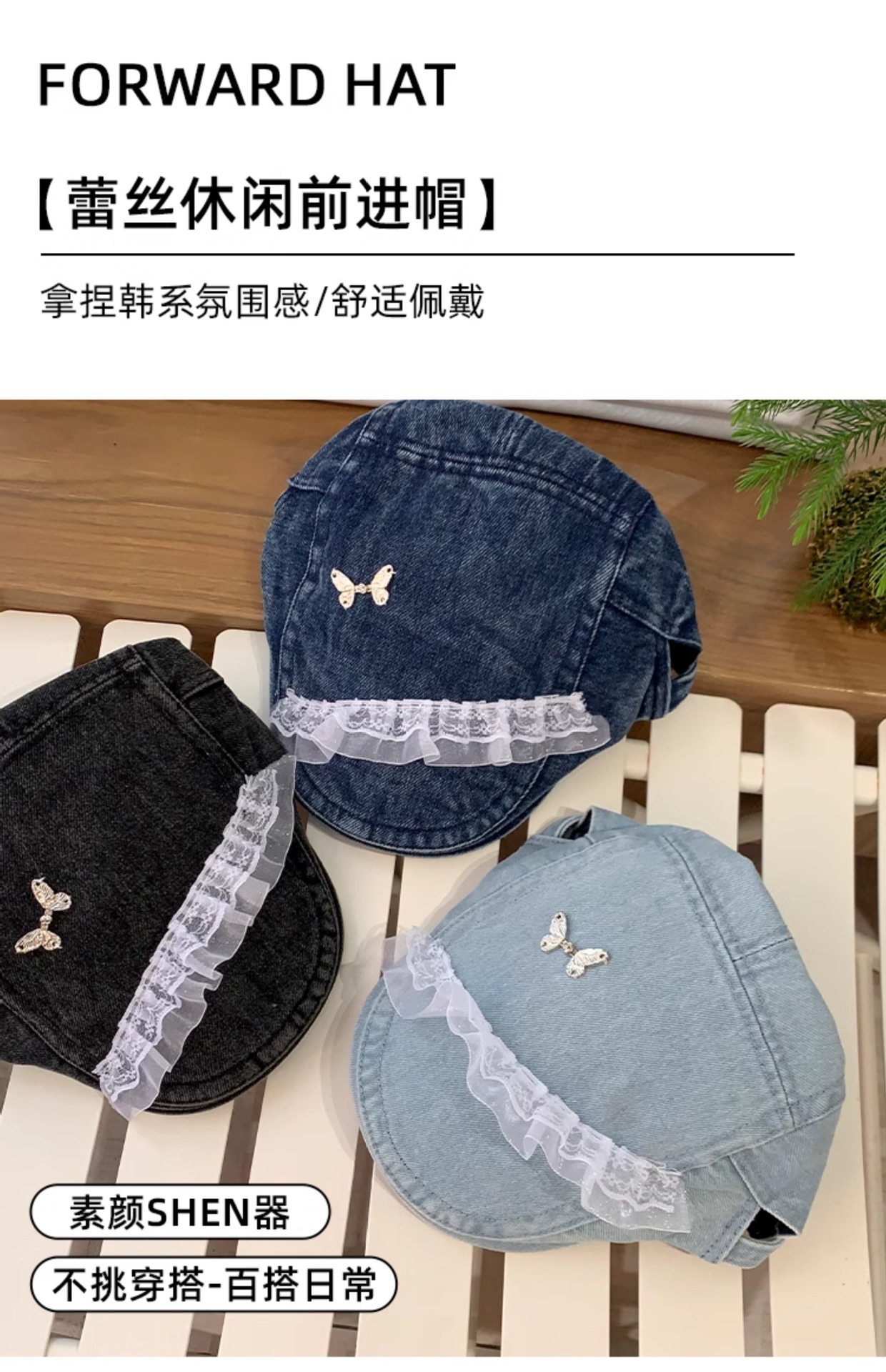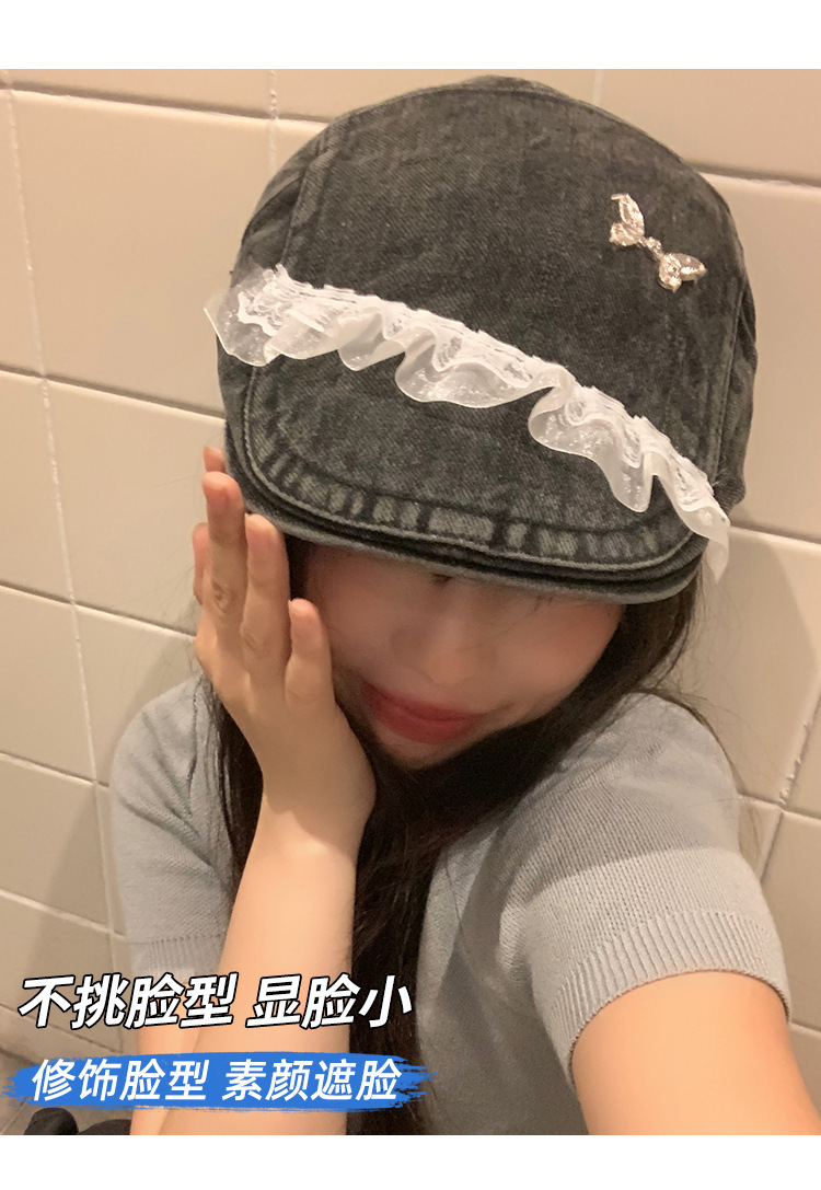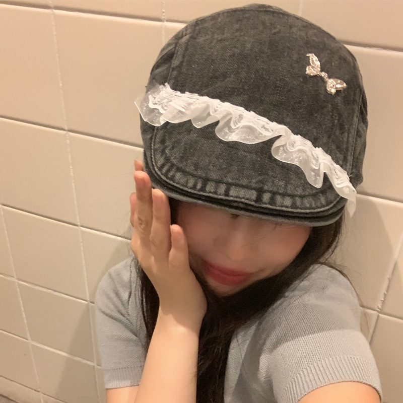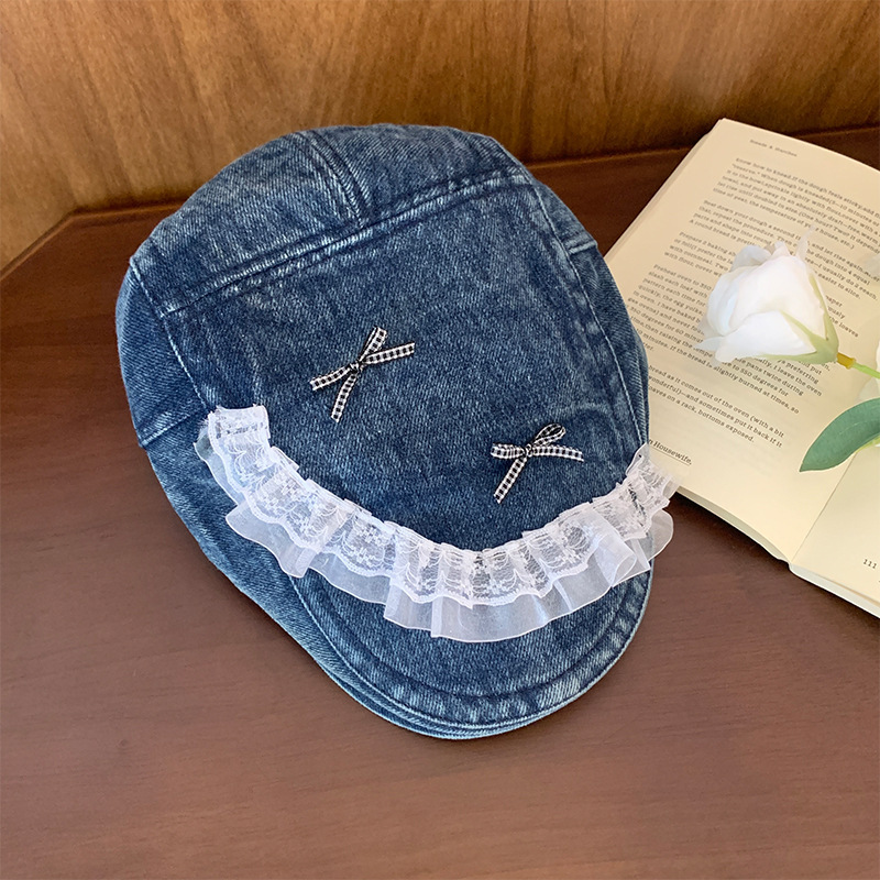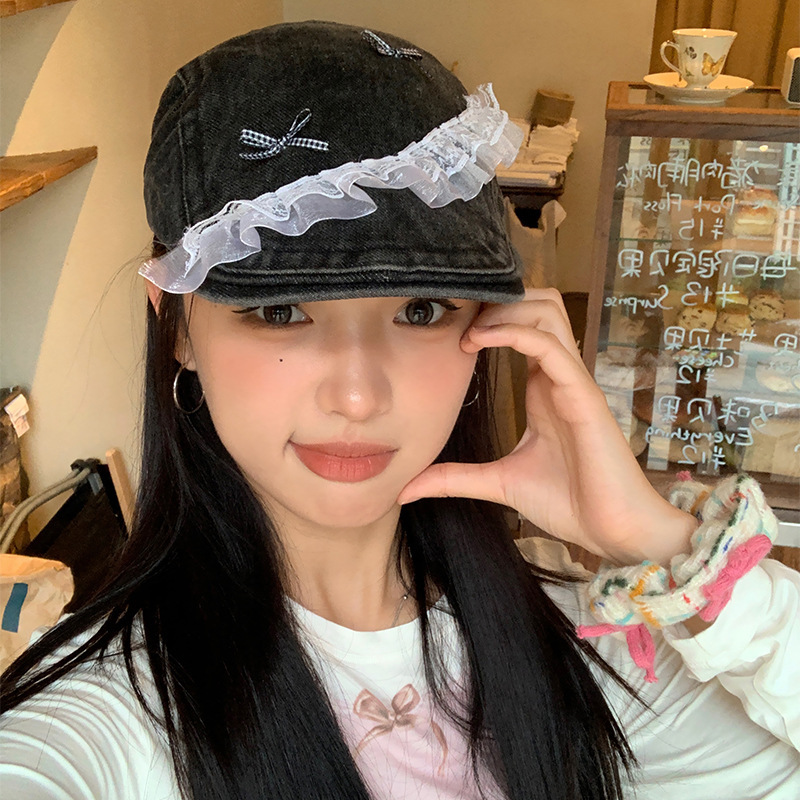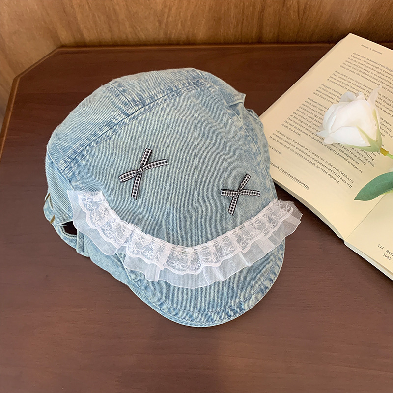 여름 올 매치 일본 스타일 빈티지 활 레이스 데님 포워드 모자 여성의 얼굴 작은 곡선 처마 오리 혀 베일리 모자